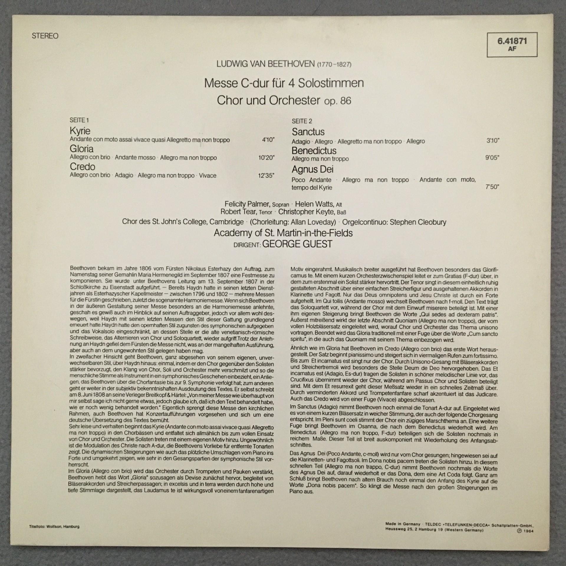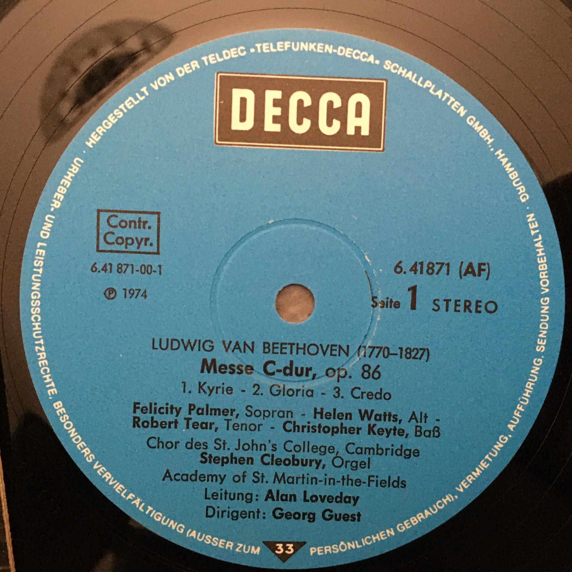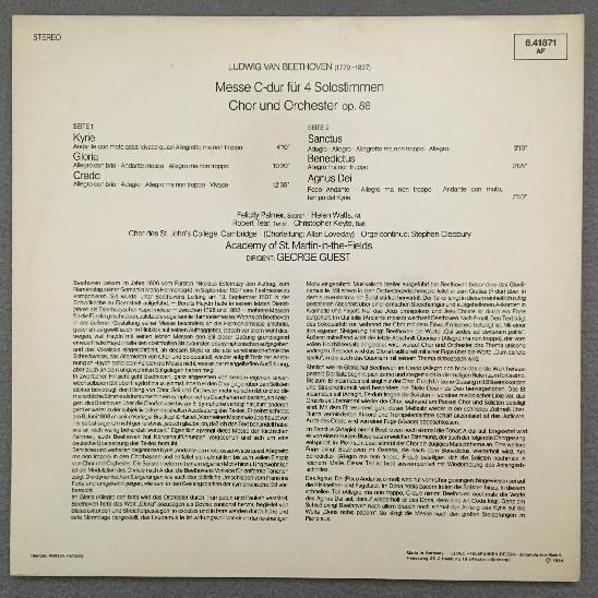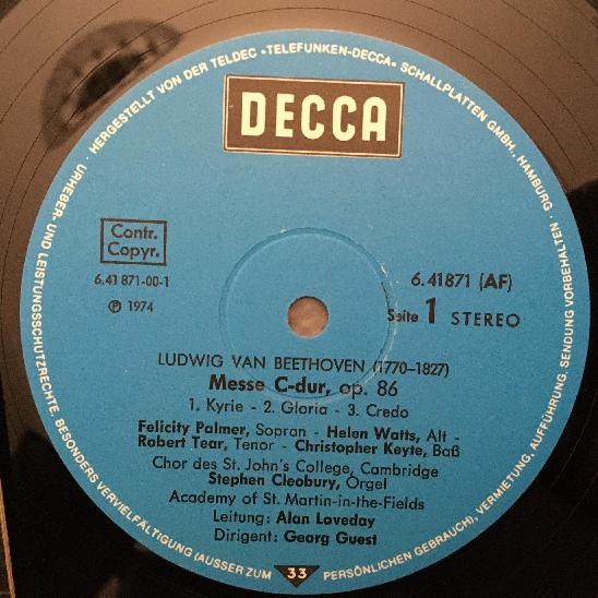 K303 Beethoven Mass in C-Major Tear Palmer Watts Guest DECCA 6.41871 Stereo