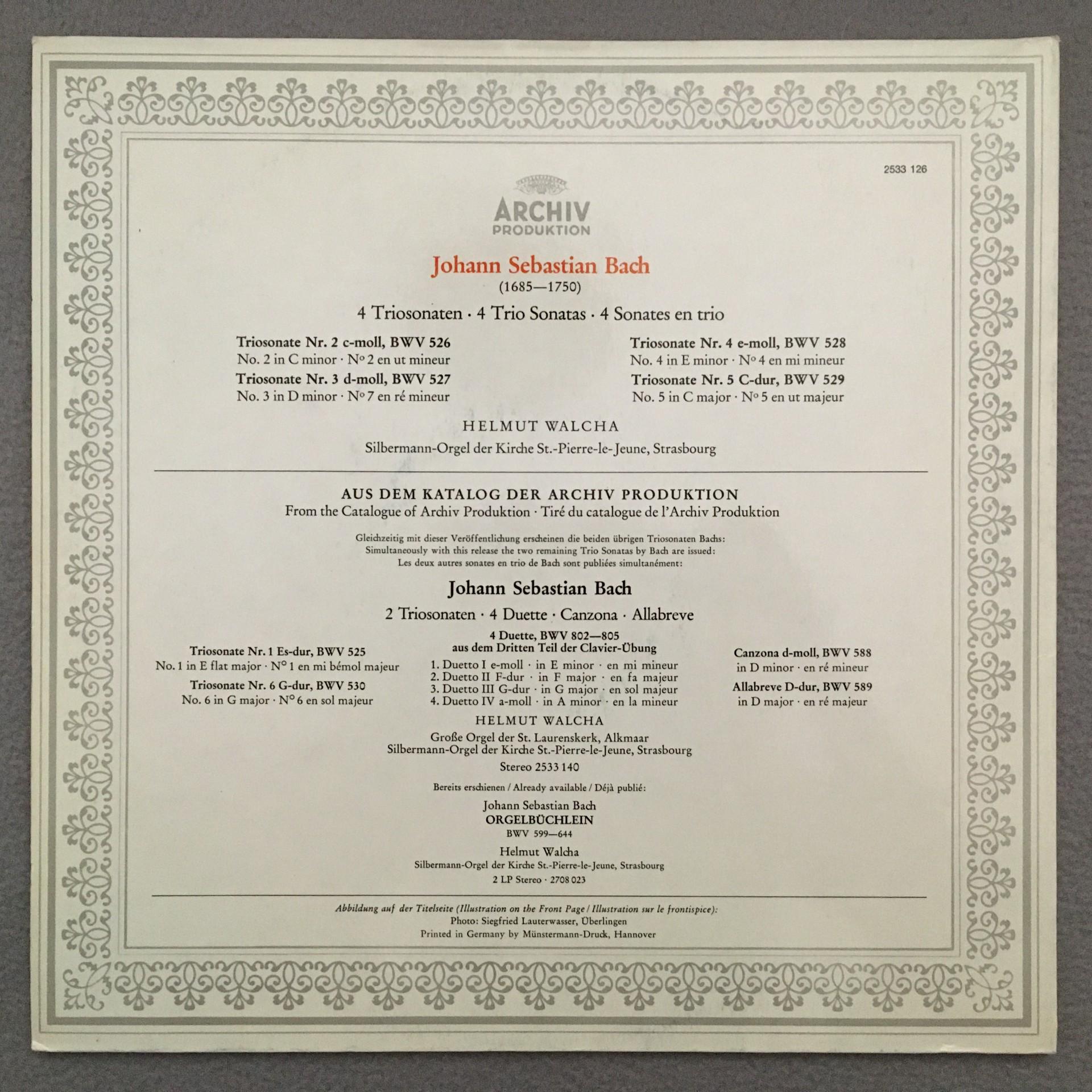 K307 Bach 4 Trio Sonatas Walcha Organ Archiv DGG 2533 126 Stereo