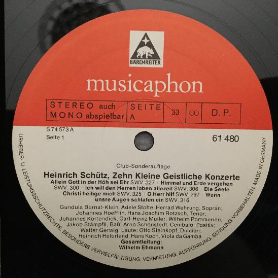 K311 Schütz Little Sacred Concertos Ehmann Musicaphon 61 480 Stereo