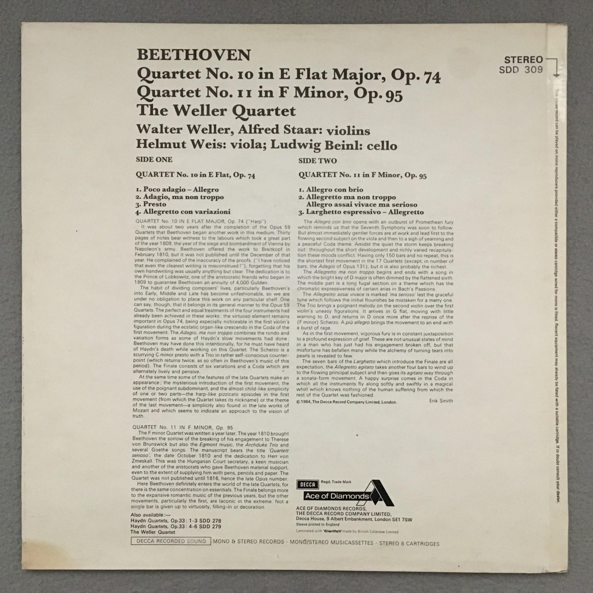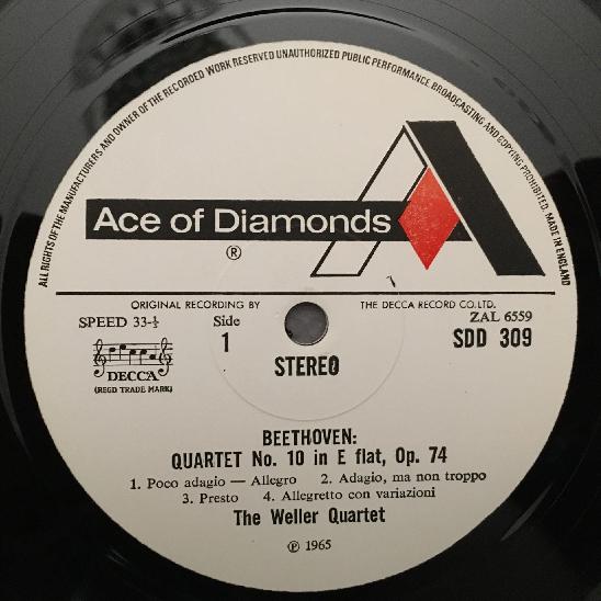 K321 Beethoven Quartets Weller Quartet Ace of Diamonds SDD 309 Stereo