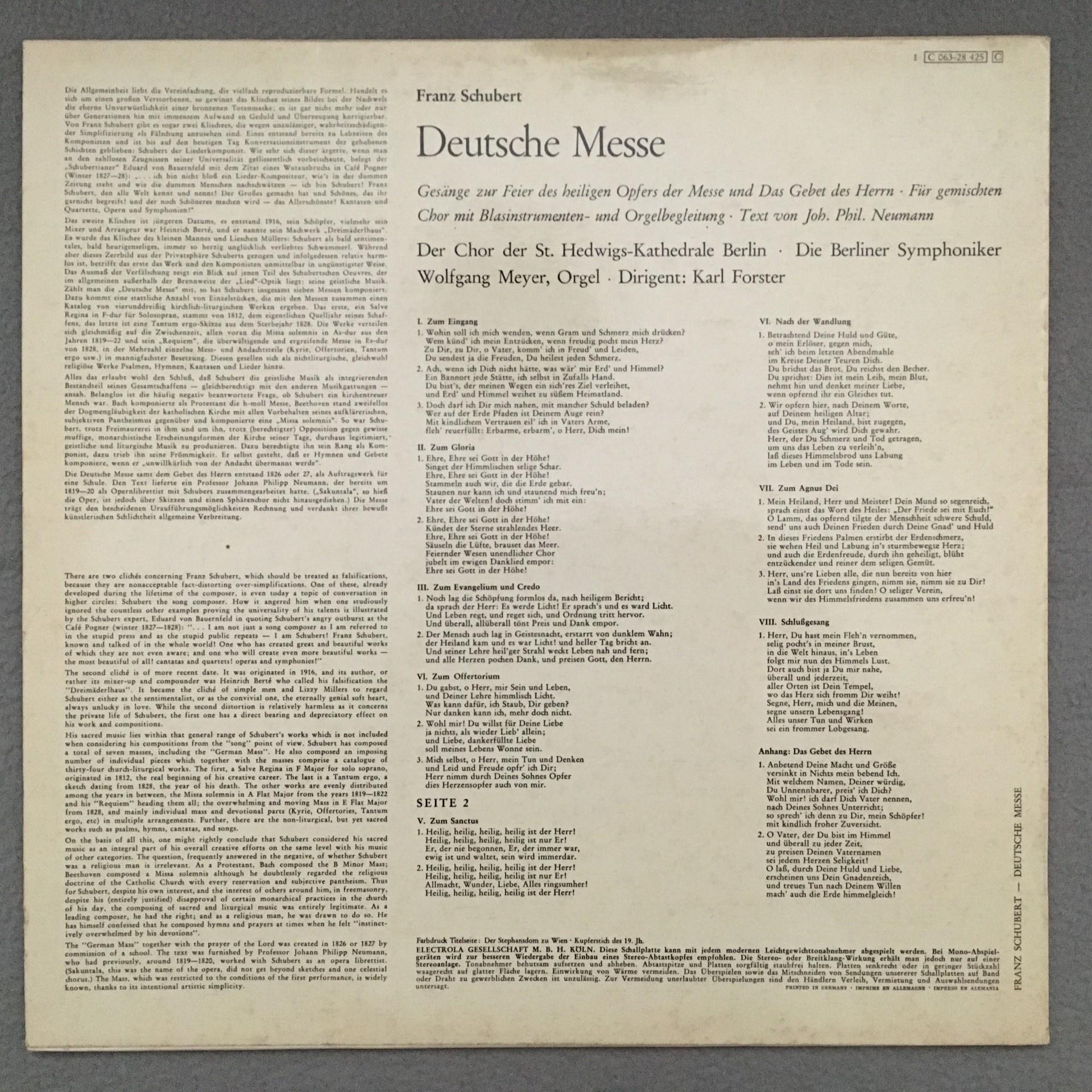 K327 Schubert German Mass Meyer Organ Forster BSO EMI 1 C 063-28 425 Stereo