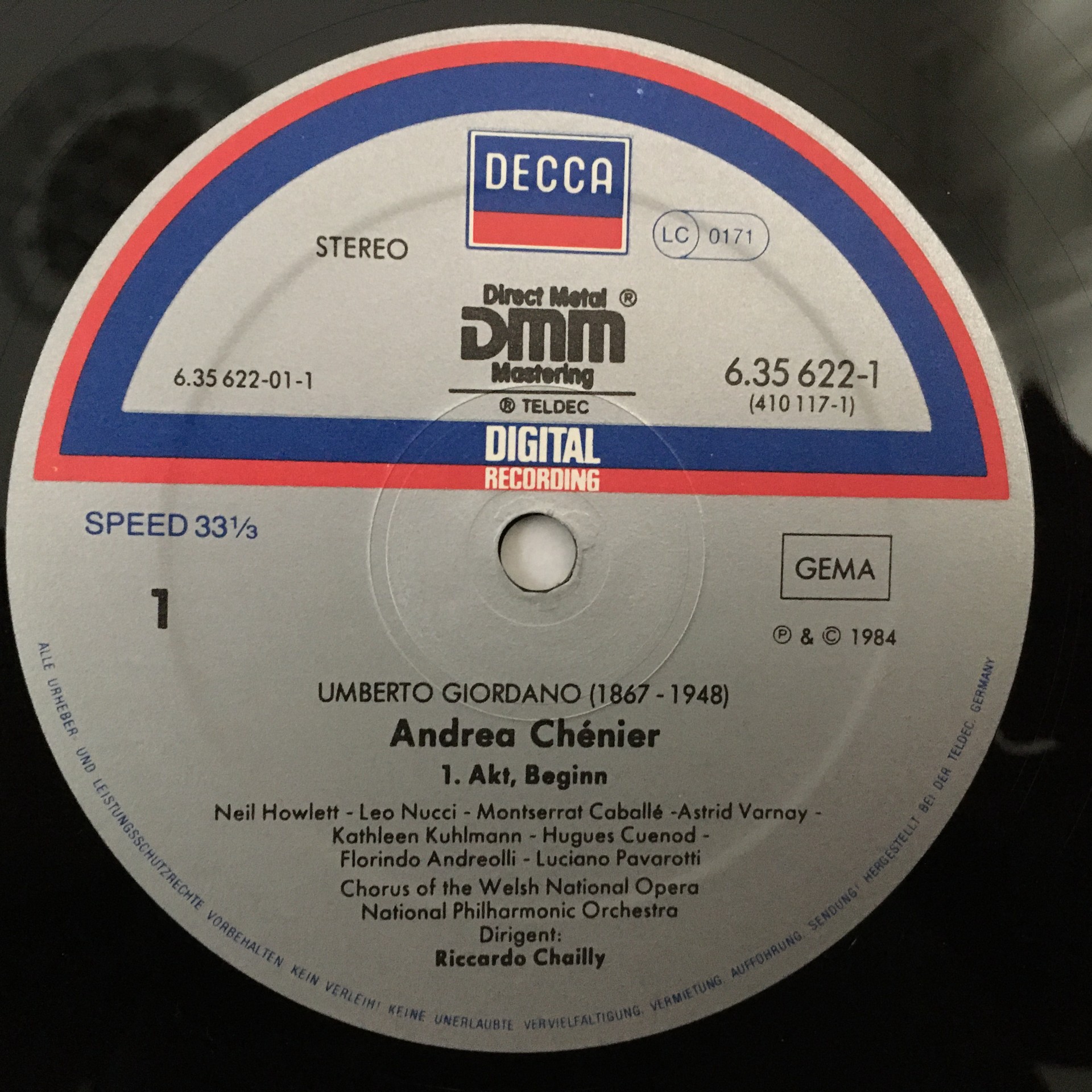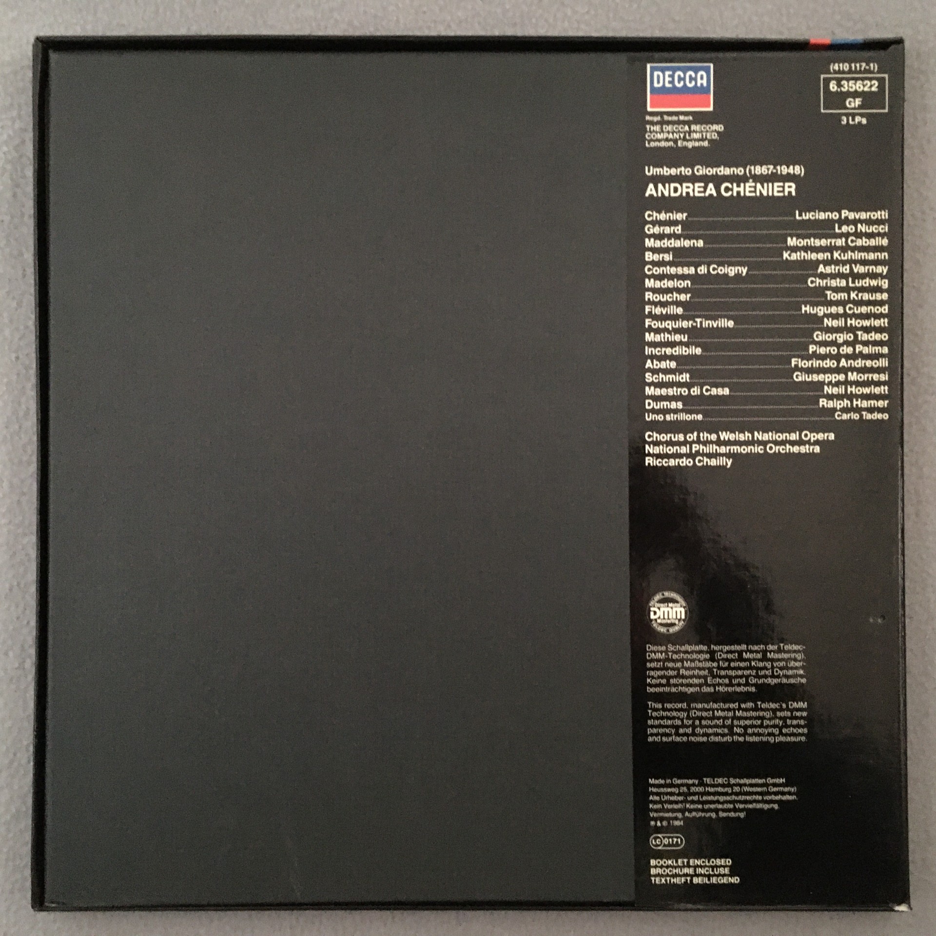 G286 Giordano Andre Chenier Pavarotti Chailly 3LP DECCA 6.35622 GF Digital St