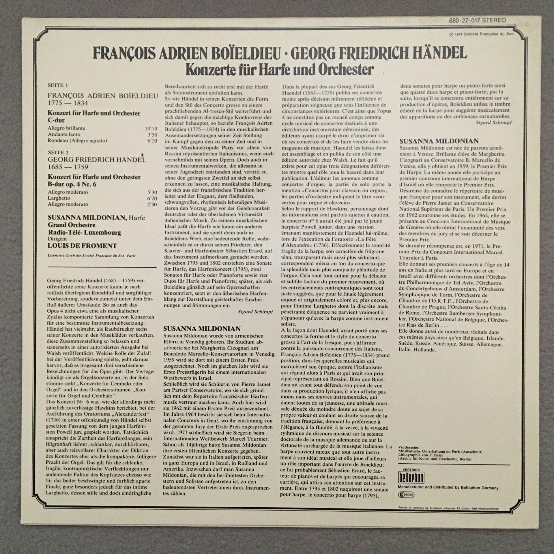 K333 Boieldieu Handel Harp Concertos Mildonian Froment Aristocrate 680 27 017 S