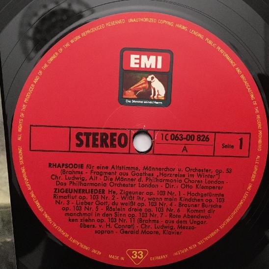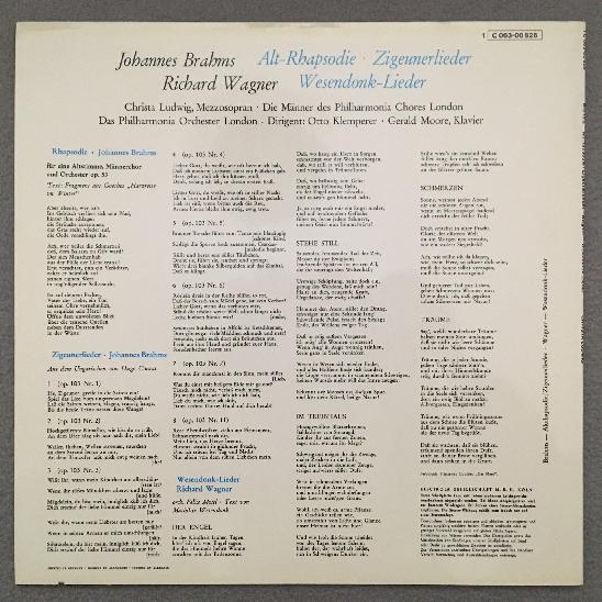 K336 Brahms Wagner Songs Ludwig Moore Klemperer LPO EMI 1 C 063-00 826 Stereo