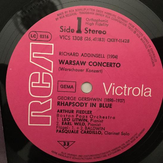 K337 Gershwin Rhapsody in Blue Wild Litwin Fiedler RCA VICS 26.41183 Stereo
