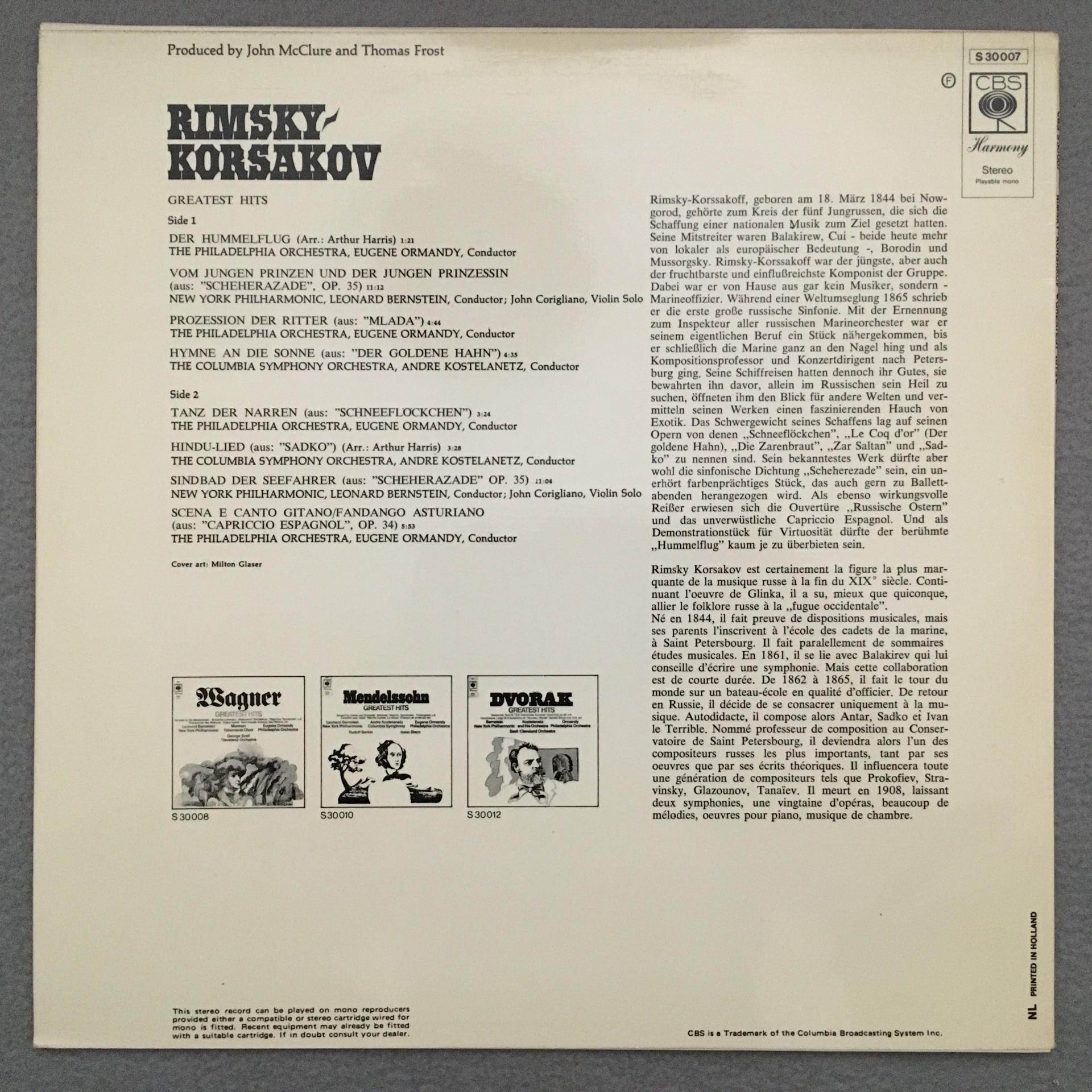 K351 Rimsky-Korssakoff greatest Hits Bernstein Ormandy CBS S 30 007 Stereo
