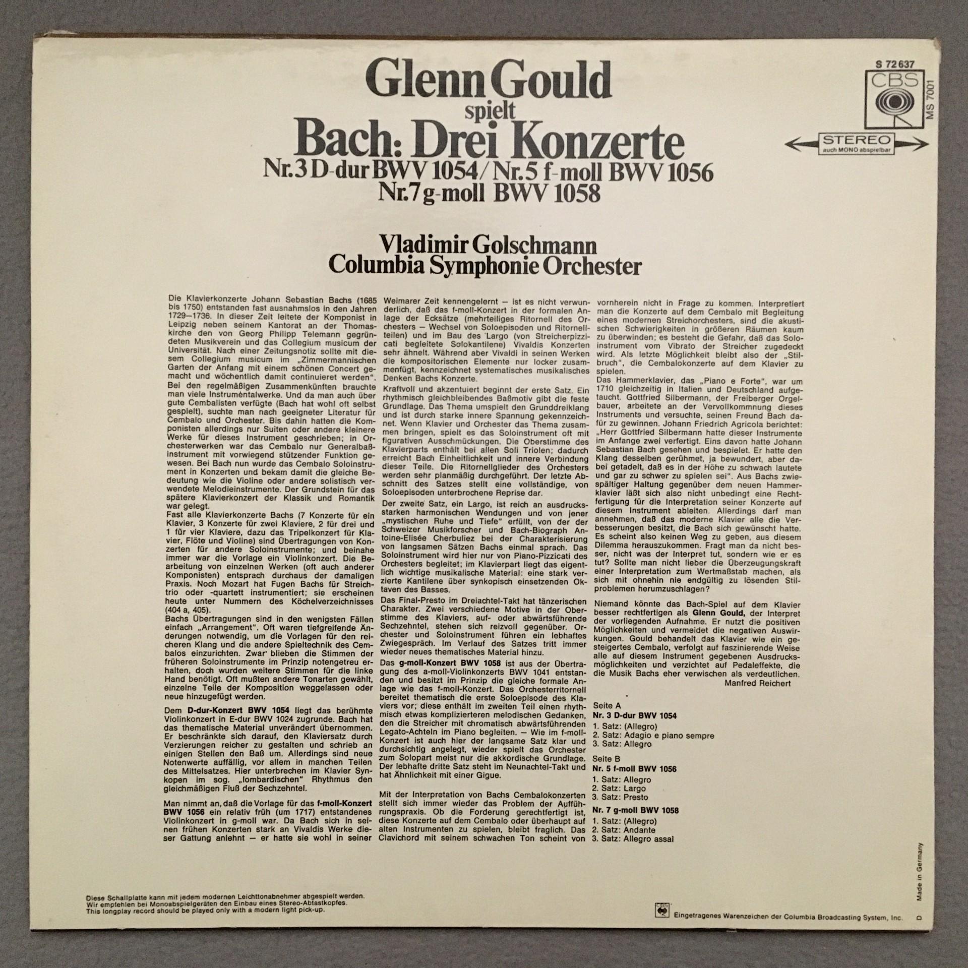 K359 Bach 3 Concertos Gould Golschmann CBS S 72 637 Stereo