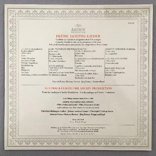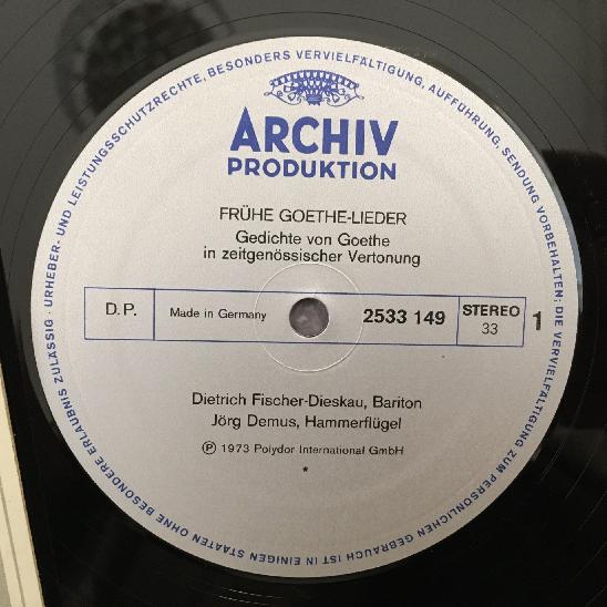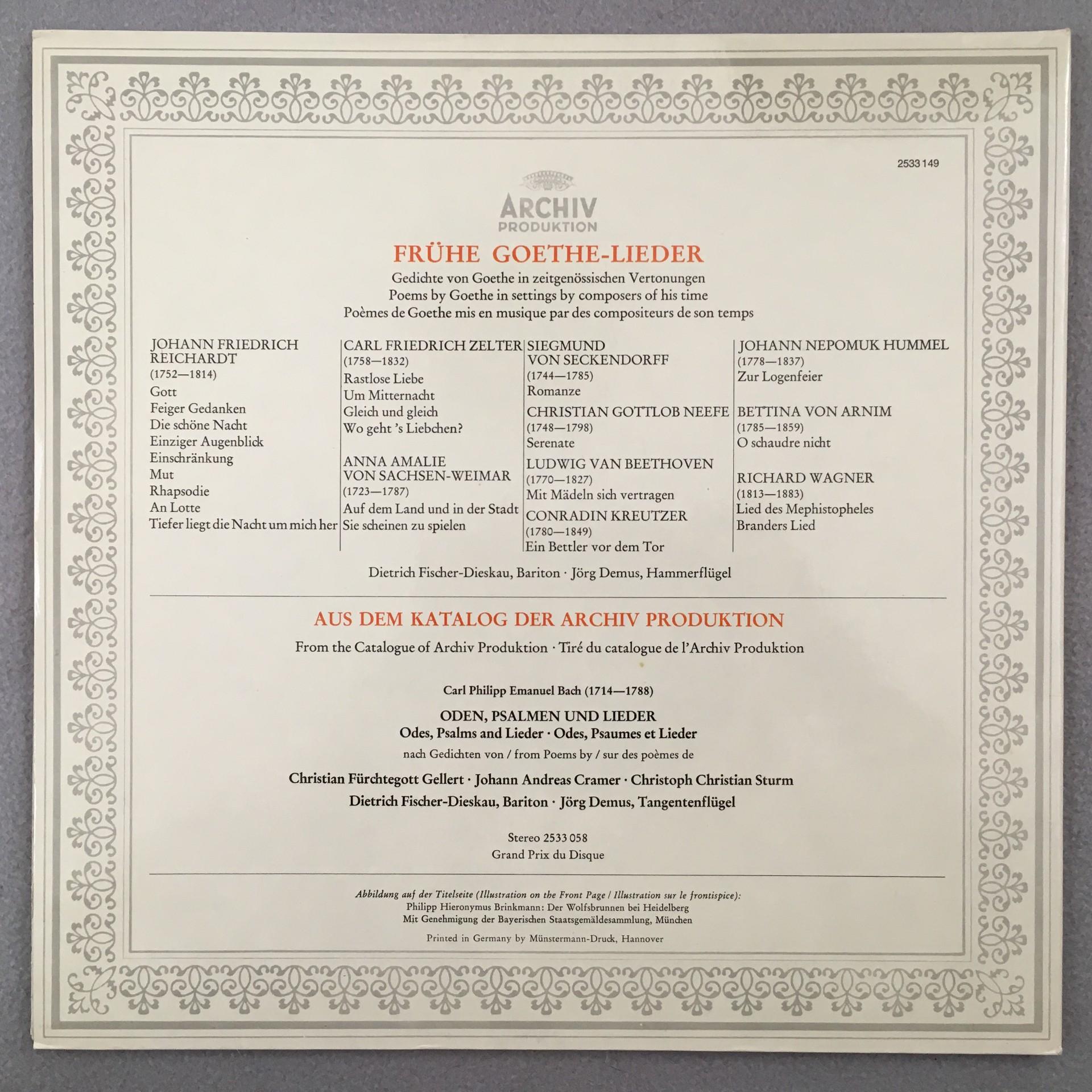 K385 Early Goethe Songs Fischer-Dieskau Demus Archiv DGG 2533 149 Stereo