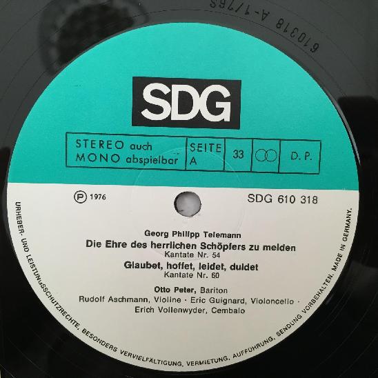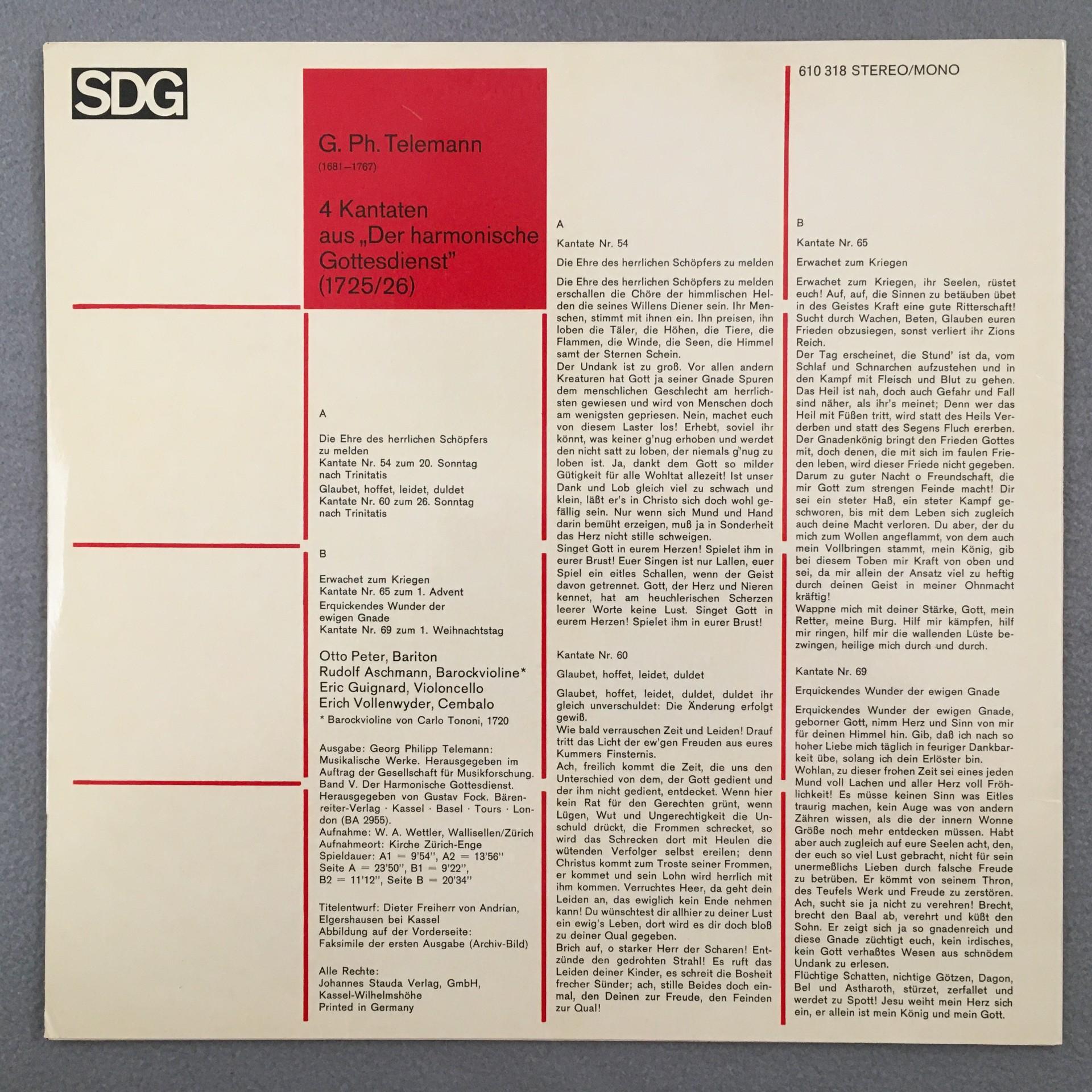 K390 Telemann 4 Cantatas Peter Aschmann Vollenwyder SDG 610 318 Stereo