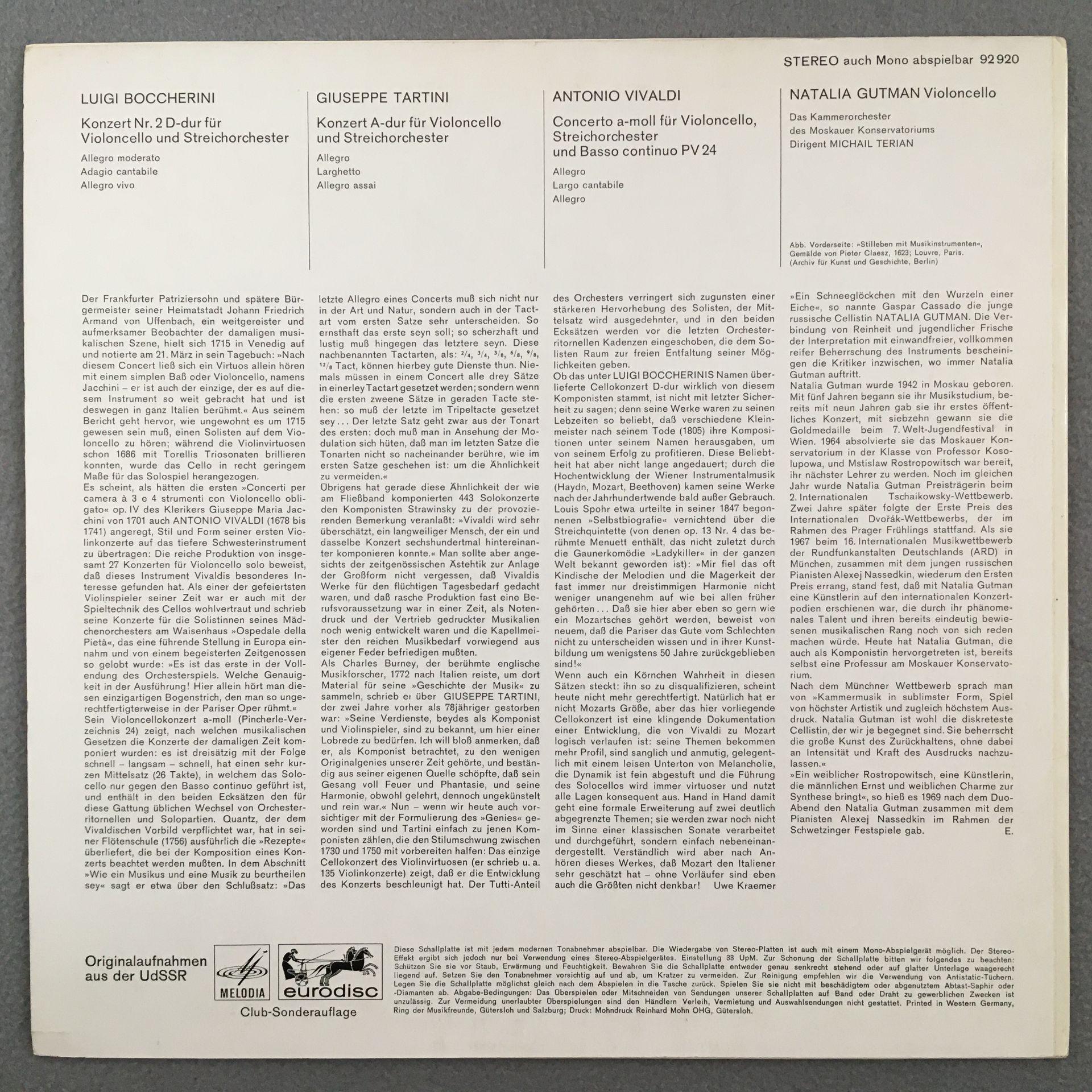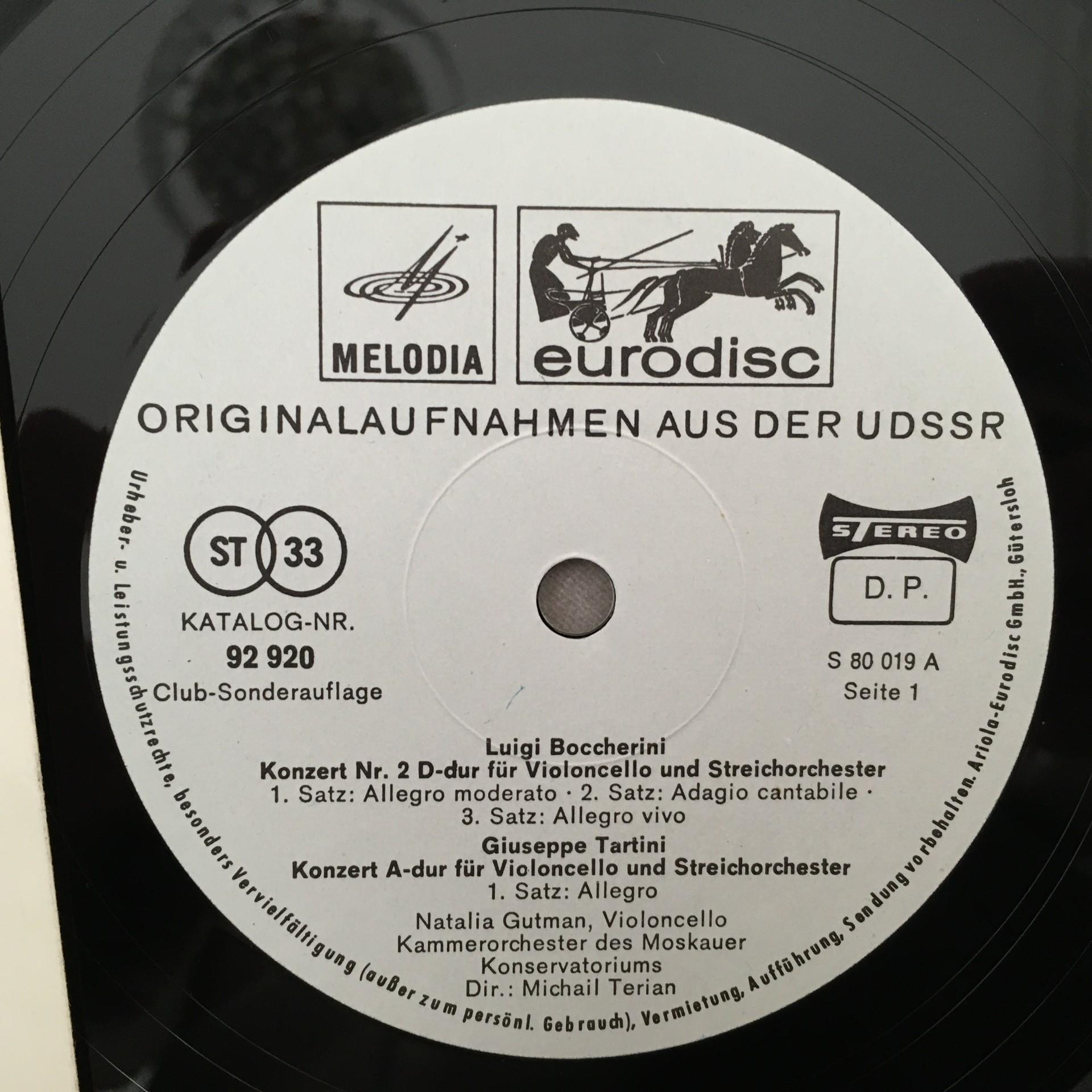 K393 Cello Concertos Boccherini Tartini Vivaldi Gutman Eurodisc 92 920 Stereo
