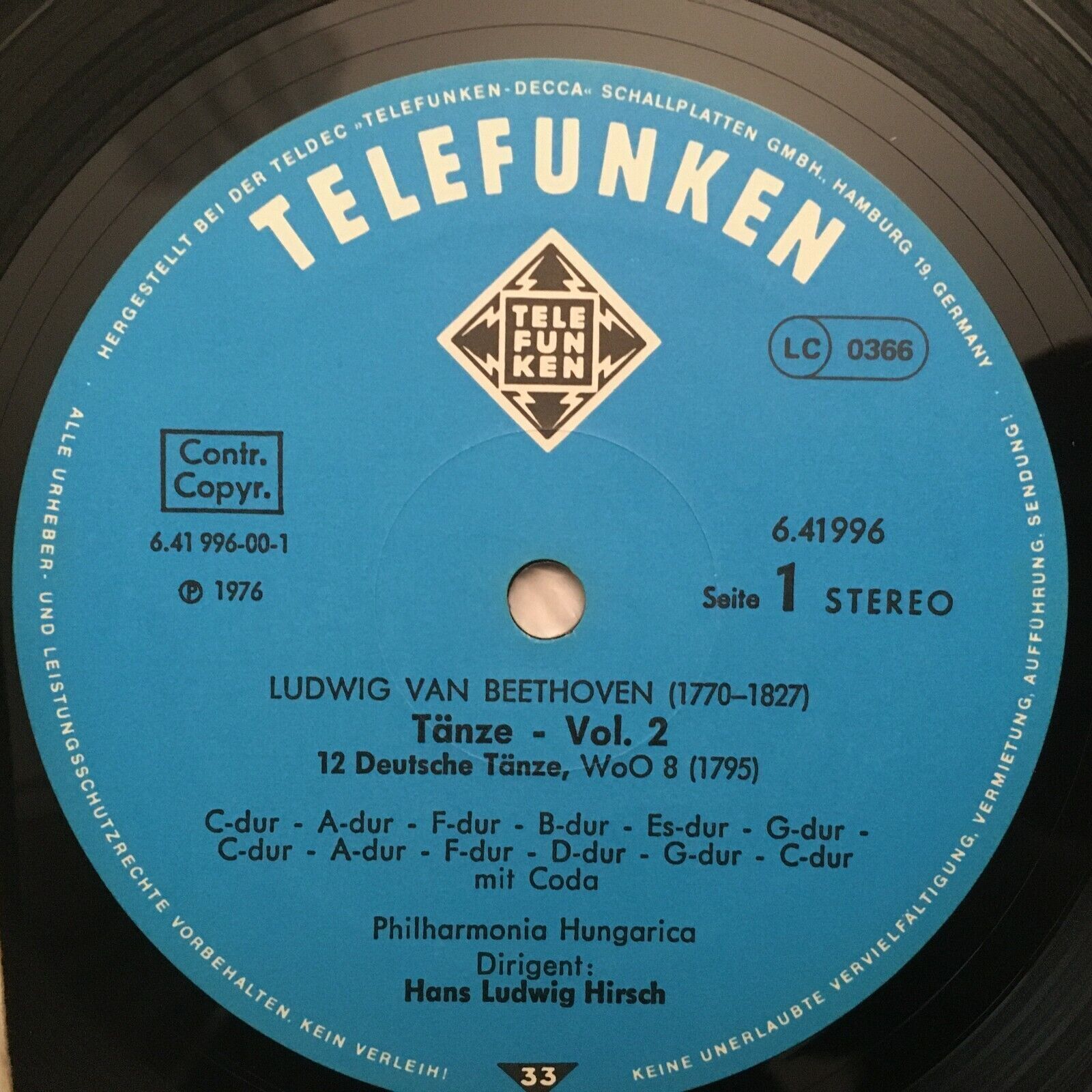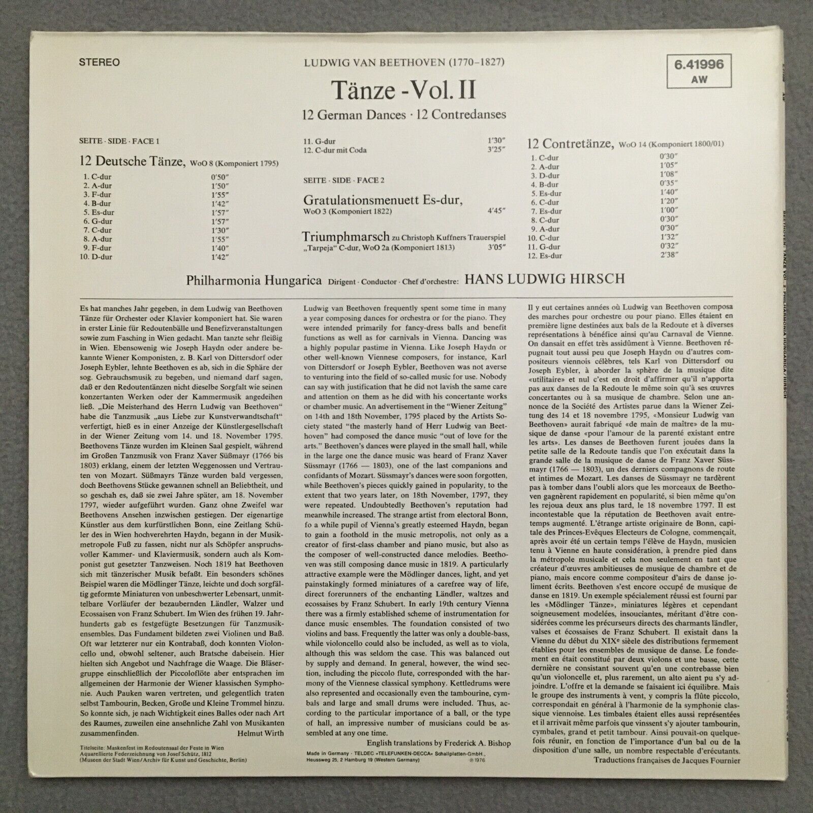 J999 Beethoven 12 German Dances Vol. II Hirsch Telefunken 6.41996 AW Stereo