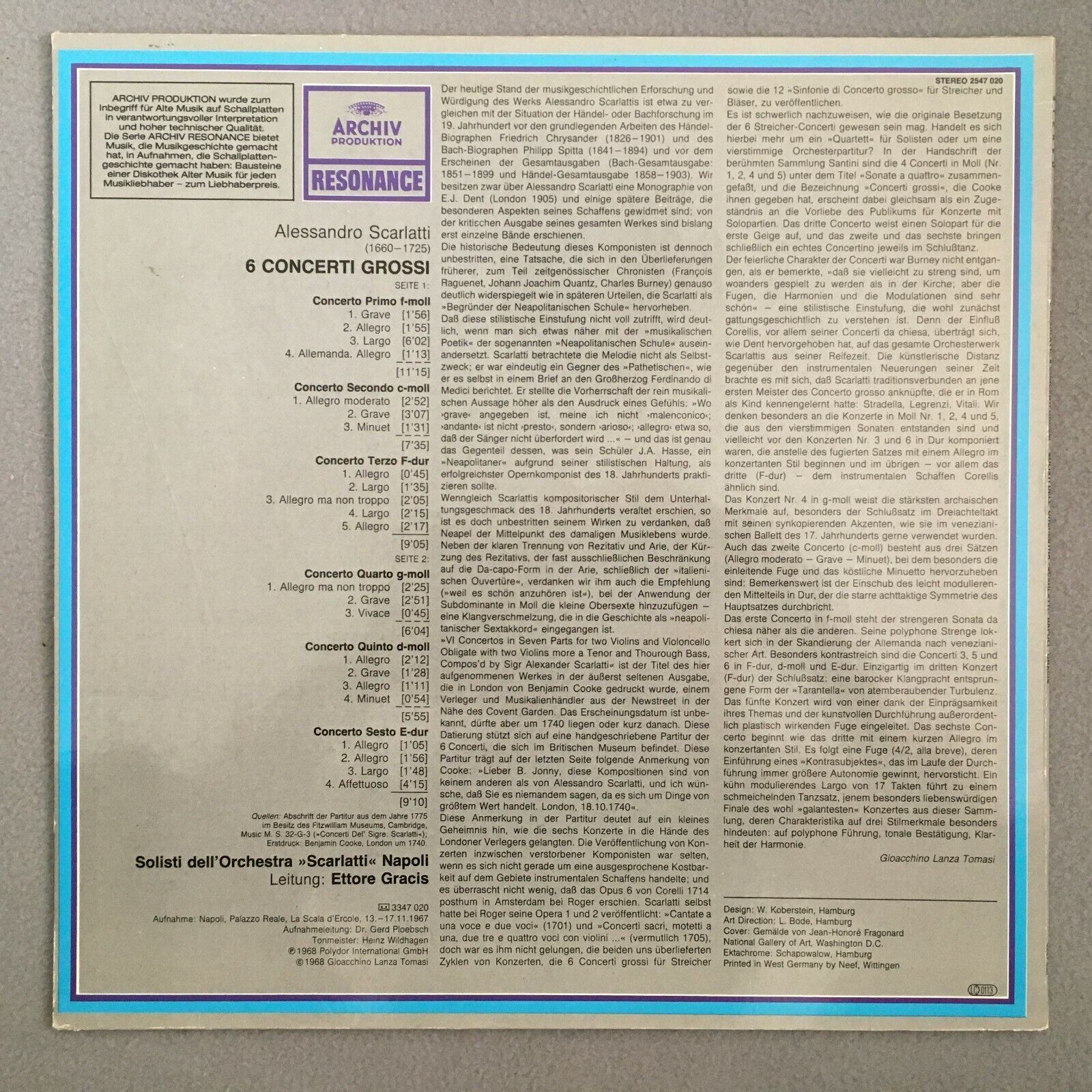 P180 Scarlatti 6 Concerti Grossi Gracis DGG Archiv 2547 020 Stereo