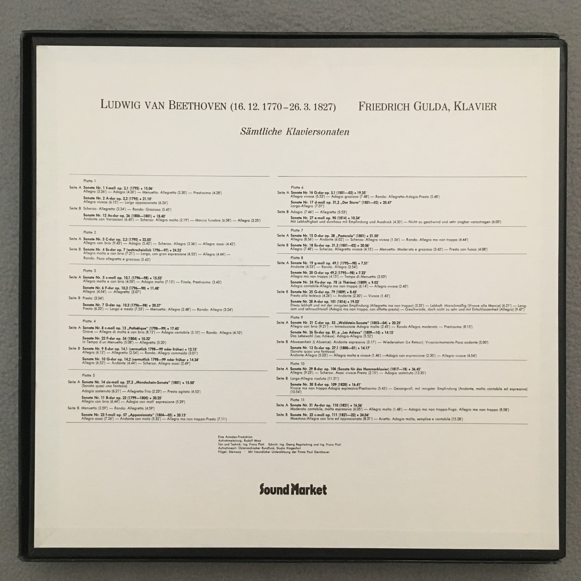 G157 Beethoven Complete Piano Sonatas Gulda 11LP Gramola 11 Stereo