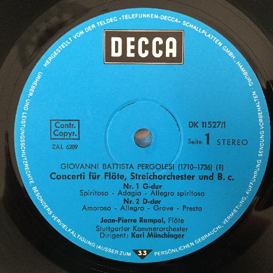 G155 Pergolesi Flute Concertos Rampal Munchinger 2LP DECCA DK 11 527/1-2 Stereo