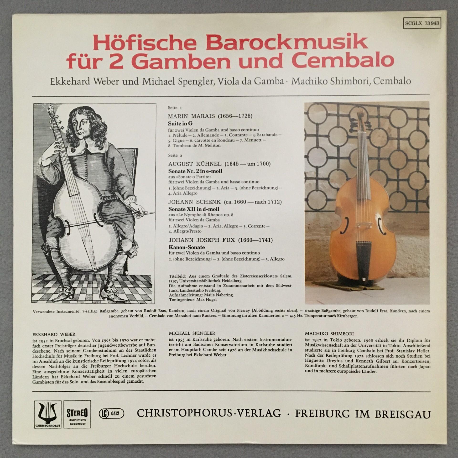 K405 Music for Gambas & Harpsichord Weber Shimbori Christohorus SCGLX 73 943 St