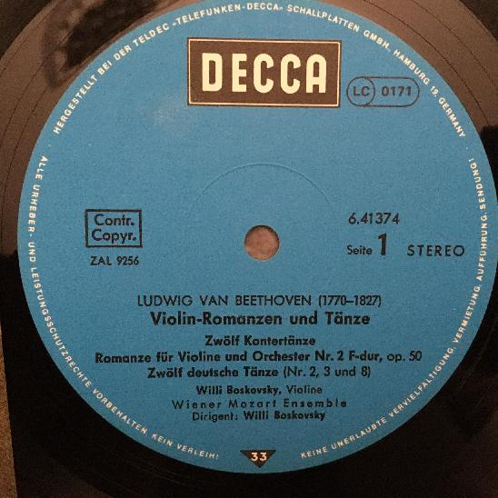 K406 Beethoven Violin Romances and Dances Boskovsky DECCA 6.41374 AS Stereo