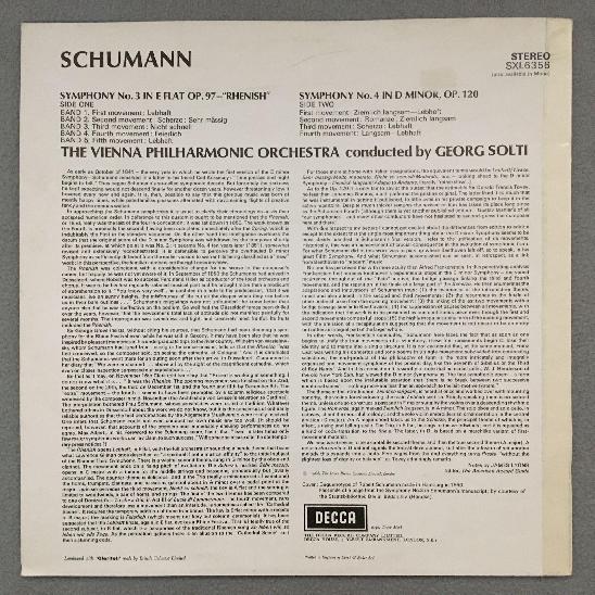 K412 Schumann Symphonies No.3 & No.4 Solti VPO DECCA SXL 6356 Stereo