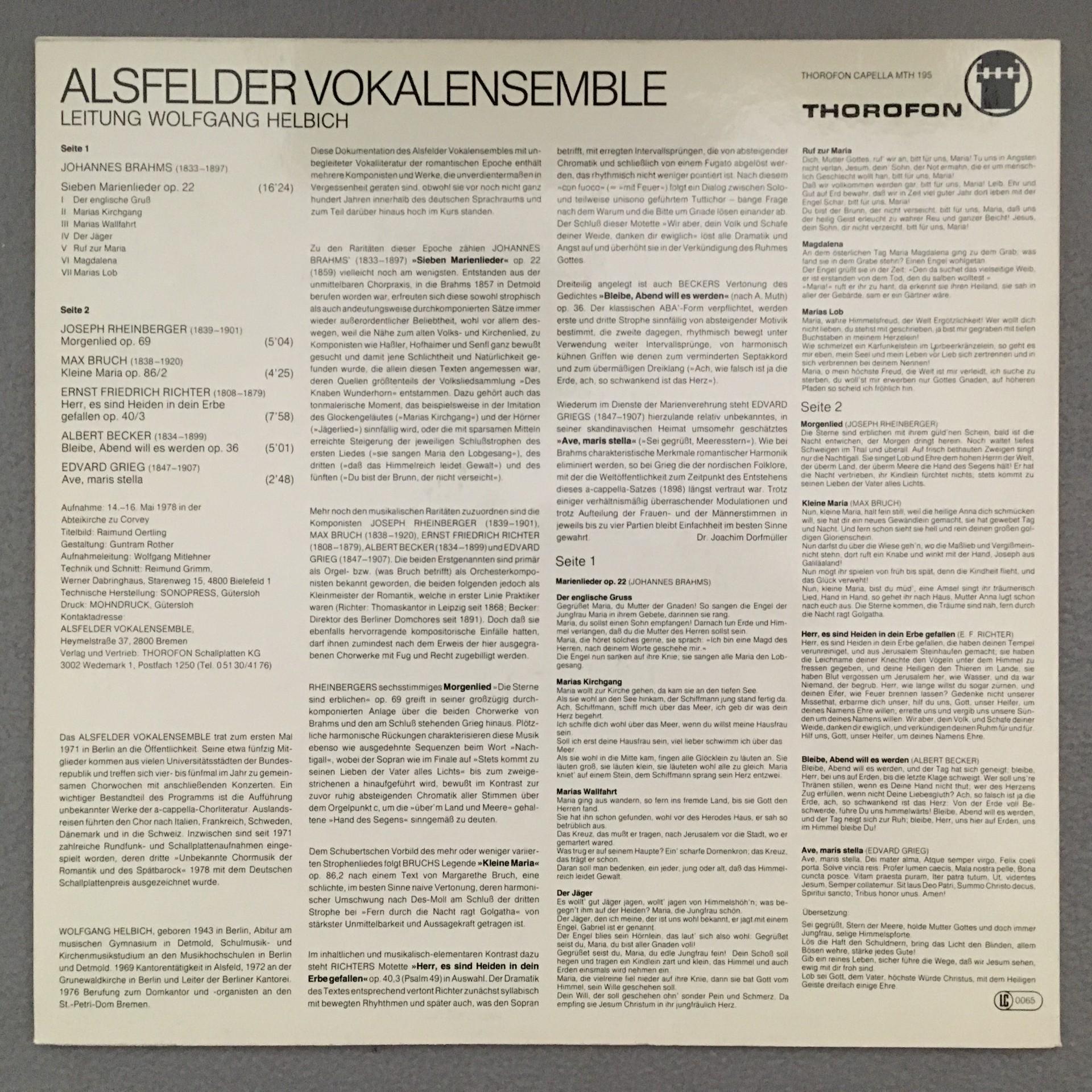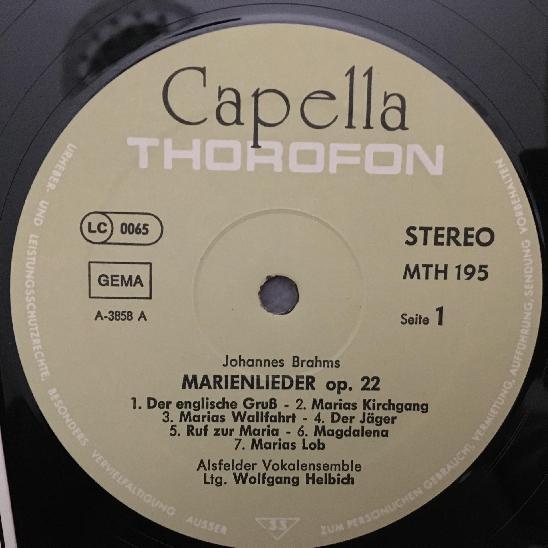 K418 Brahms 7 Marienlieder Helbich Thorofon Capella MTH 195 Stereo