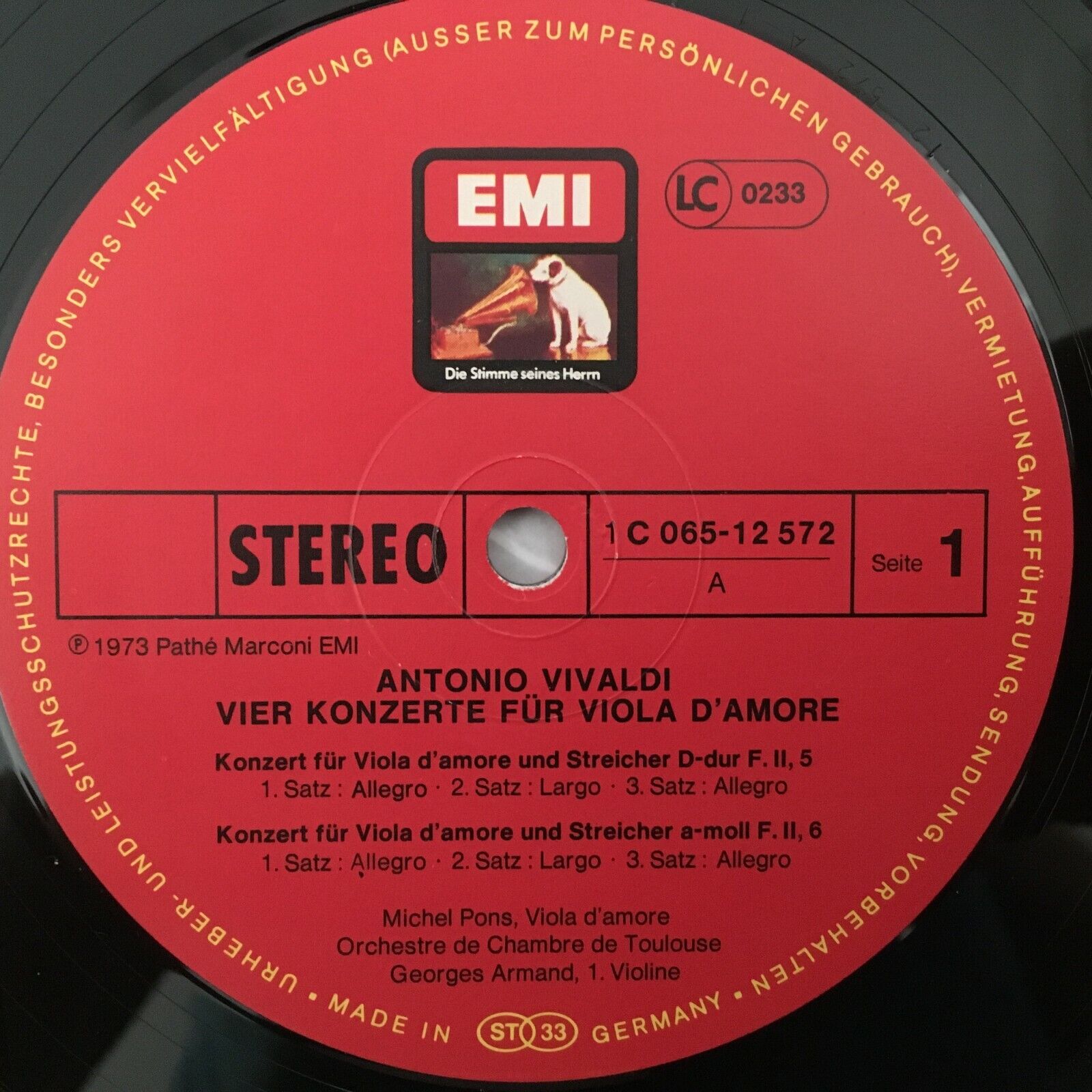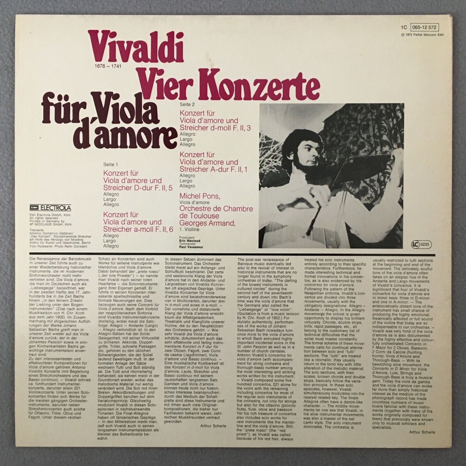 S999 Vivaldi 4 Concertos for Viola d´Amore Pons Armand EMI 1C 065-12 572 Stereo