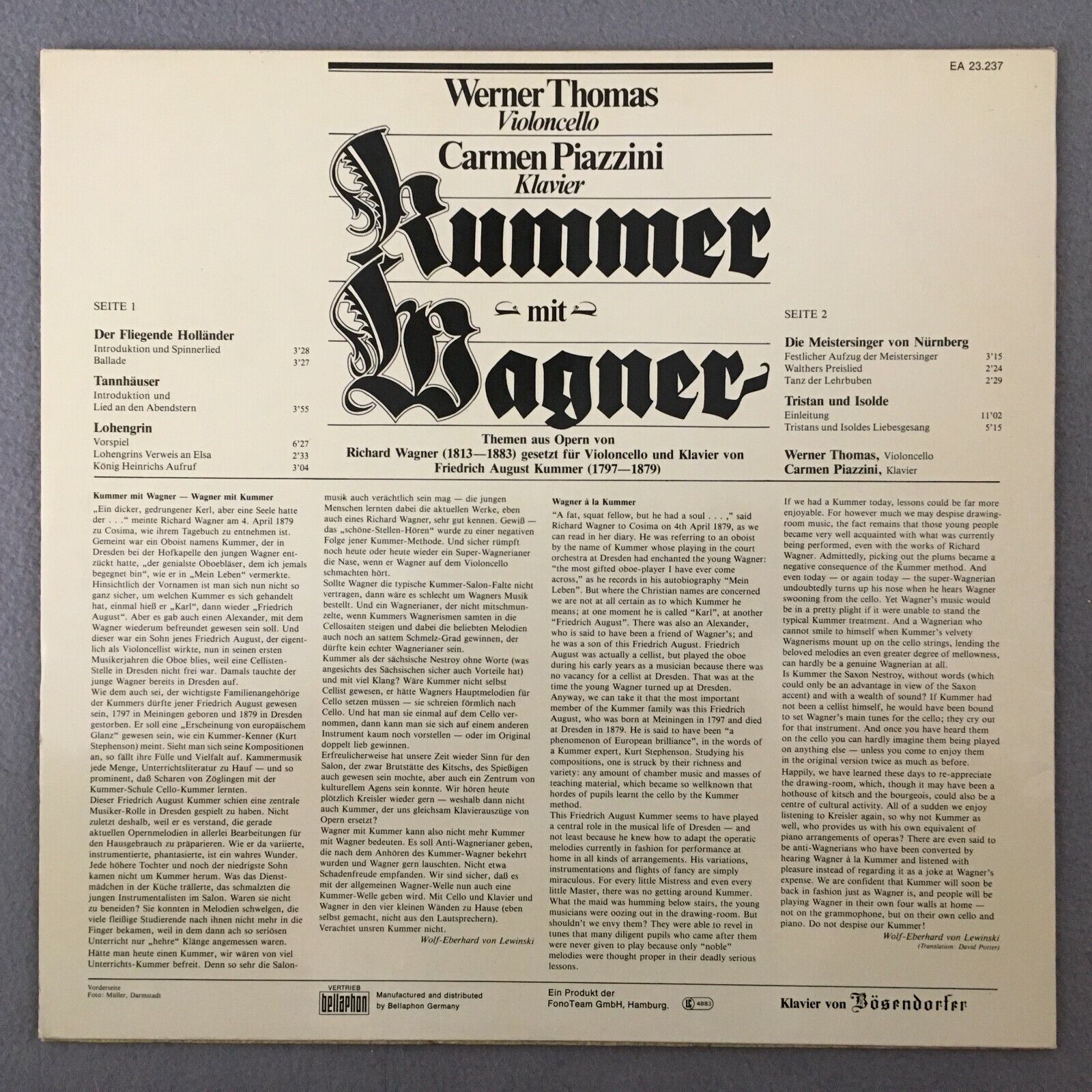 R708 Wagner Kummer Opera Themes Thomas Cello Piazzini Acanta EA 23.237 Stereo
