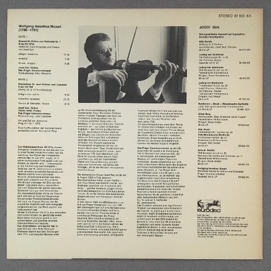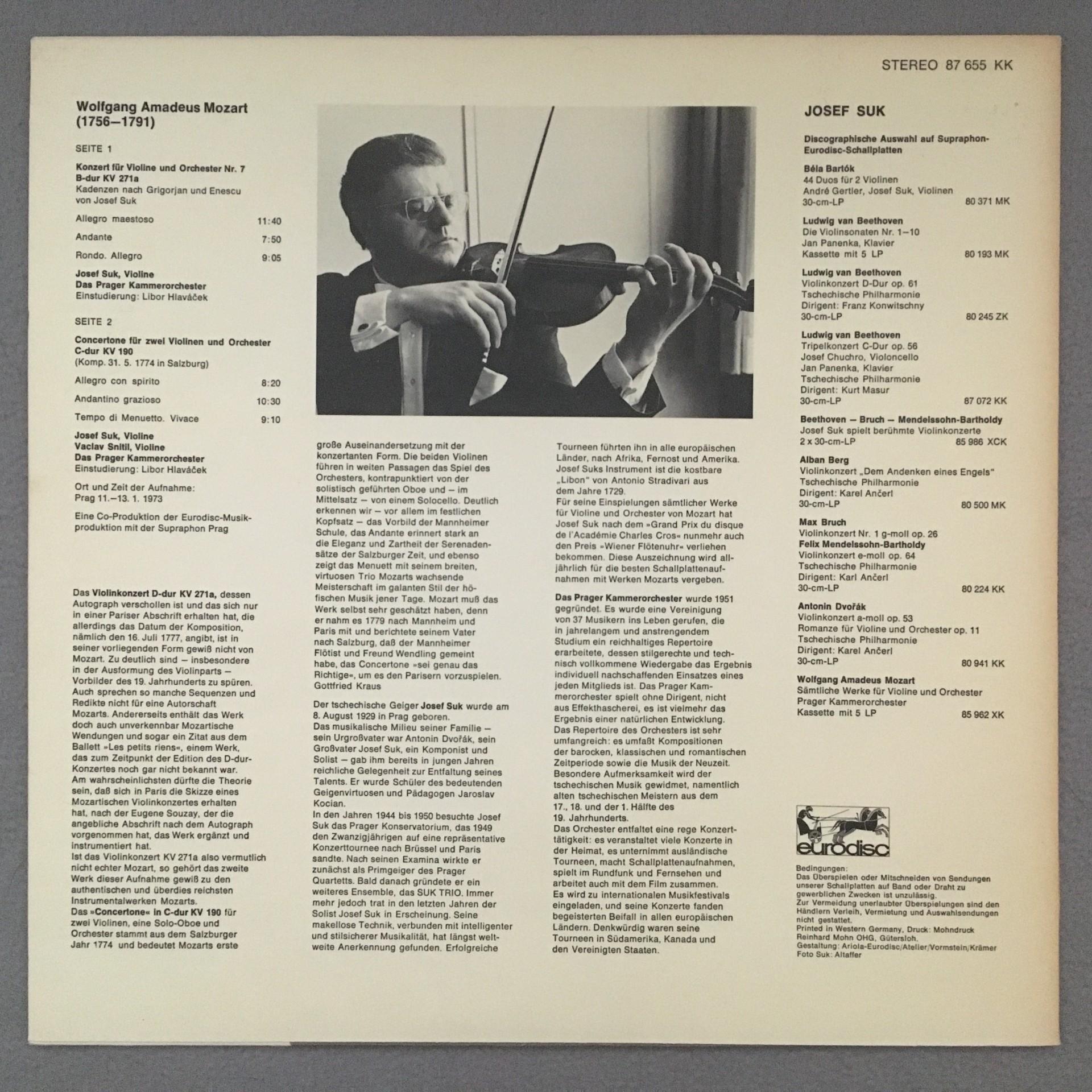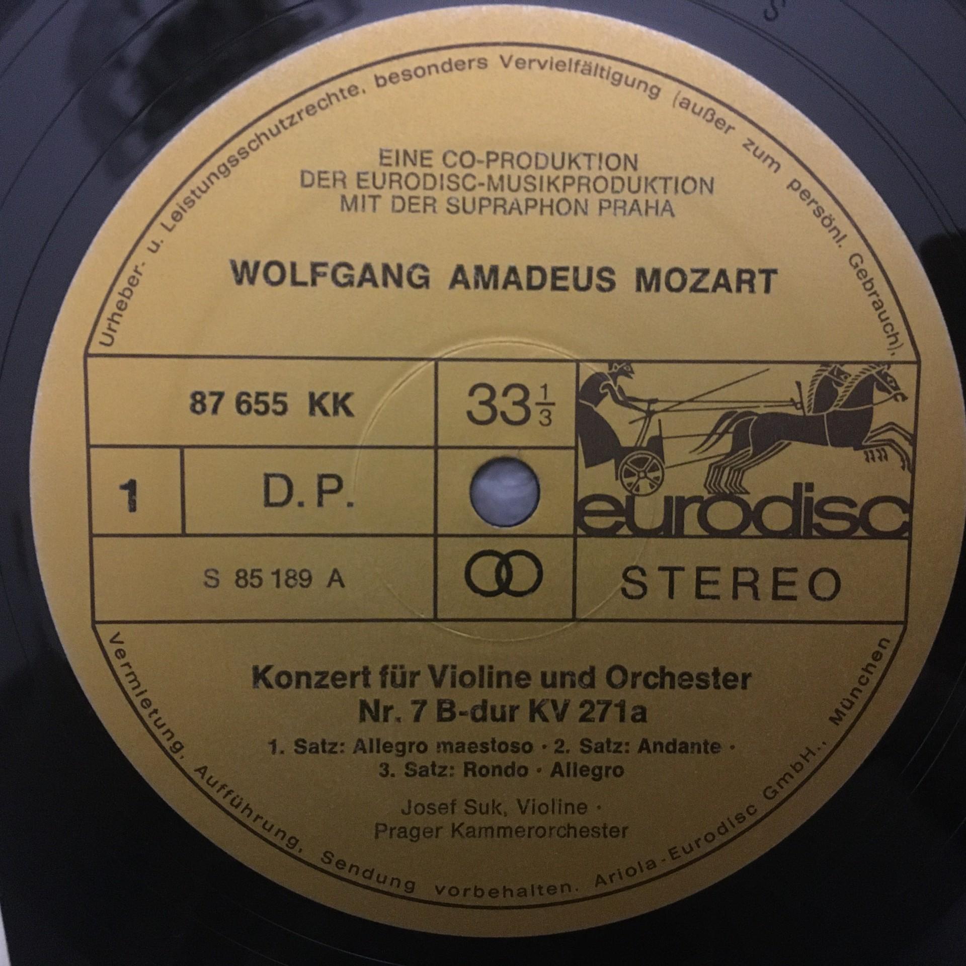 K431 Mozart Violin Concerto No.7 Suk Snitil Hlavacek Eurodisc 87 655 KK Stereo