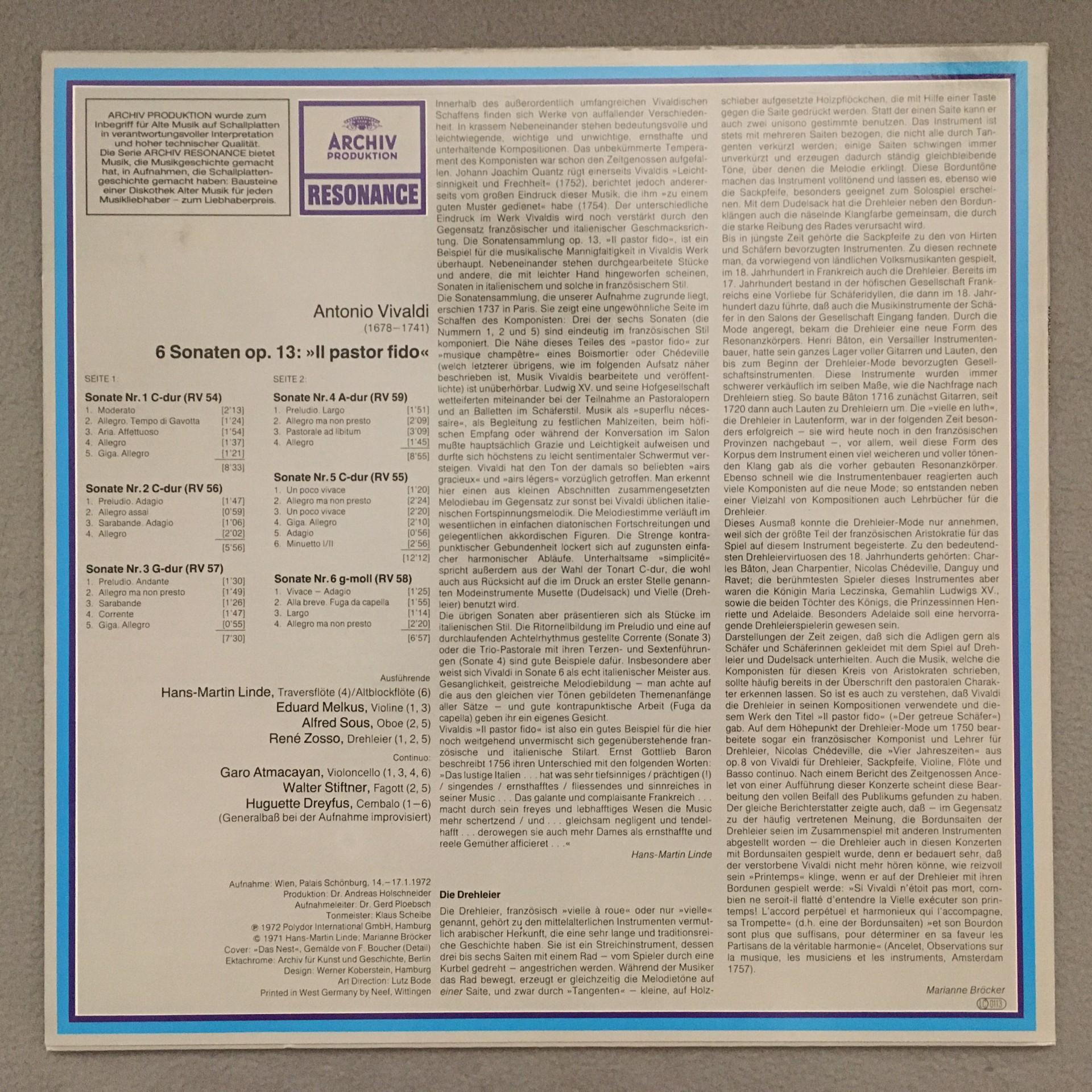 K441 Vivaldi 6 Sonatas Op.13 Linde Melkus Dreyfus Archiv DGG 2547 073 Stereo