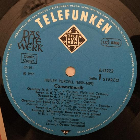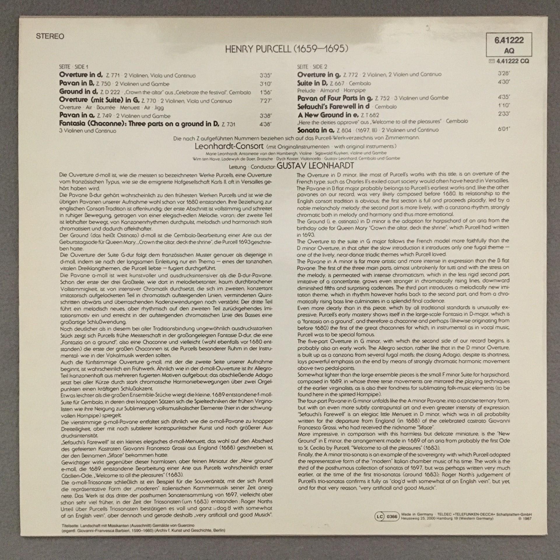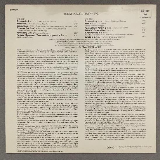 K445 Purcell Consort Music Strings & Harpsichord Leonhardt Telefunken 6.41222 AQ