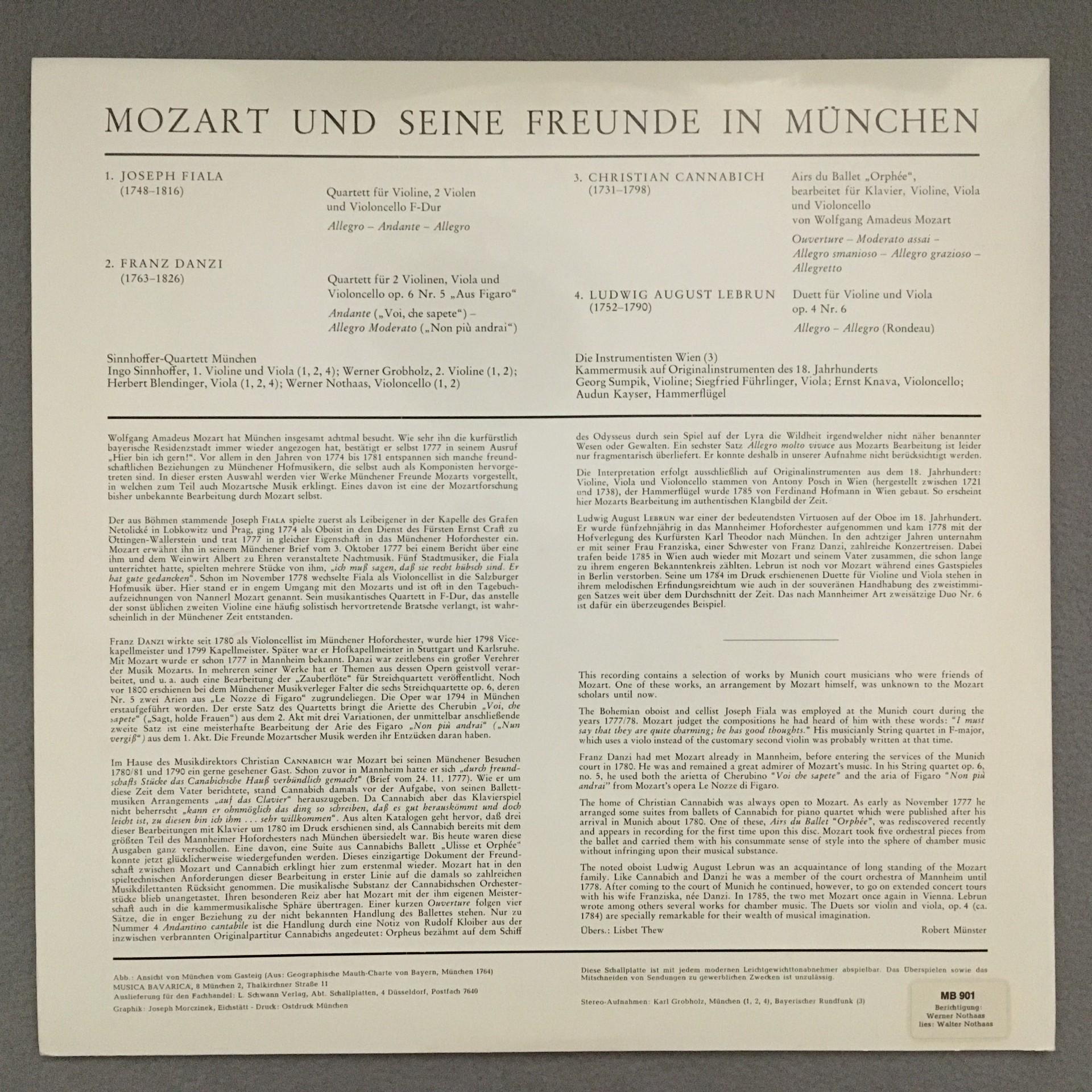 K449 Mozart & Friends Unknown Chamber Music Musica Bavarica MB 901 Stereo