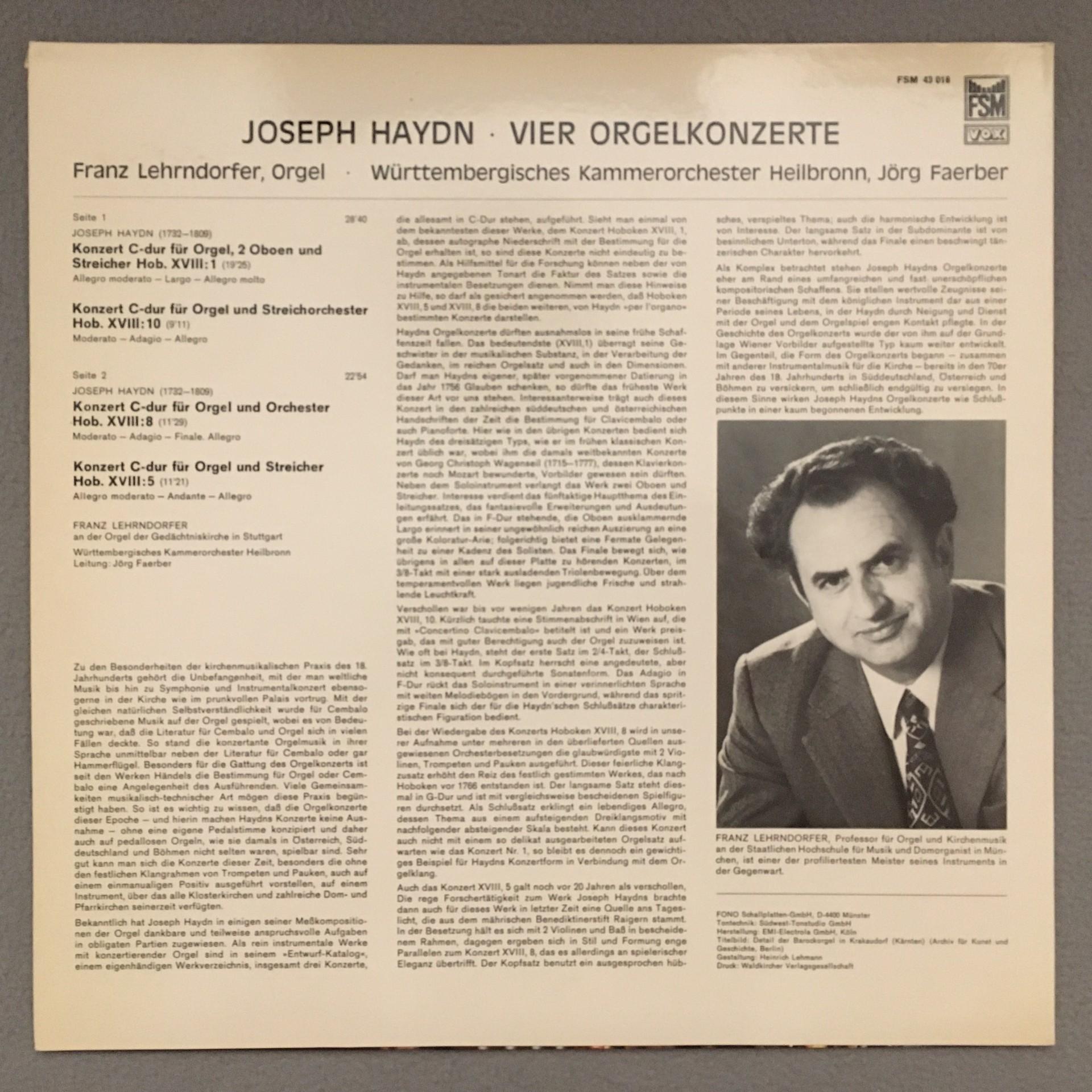 K451 Haydn 4 Organ Concertos Lehrndorfer Faerber FSM 43 018 Stereo