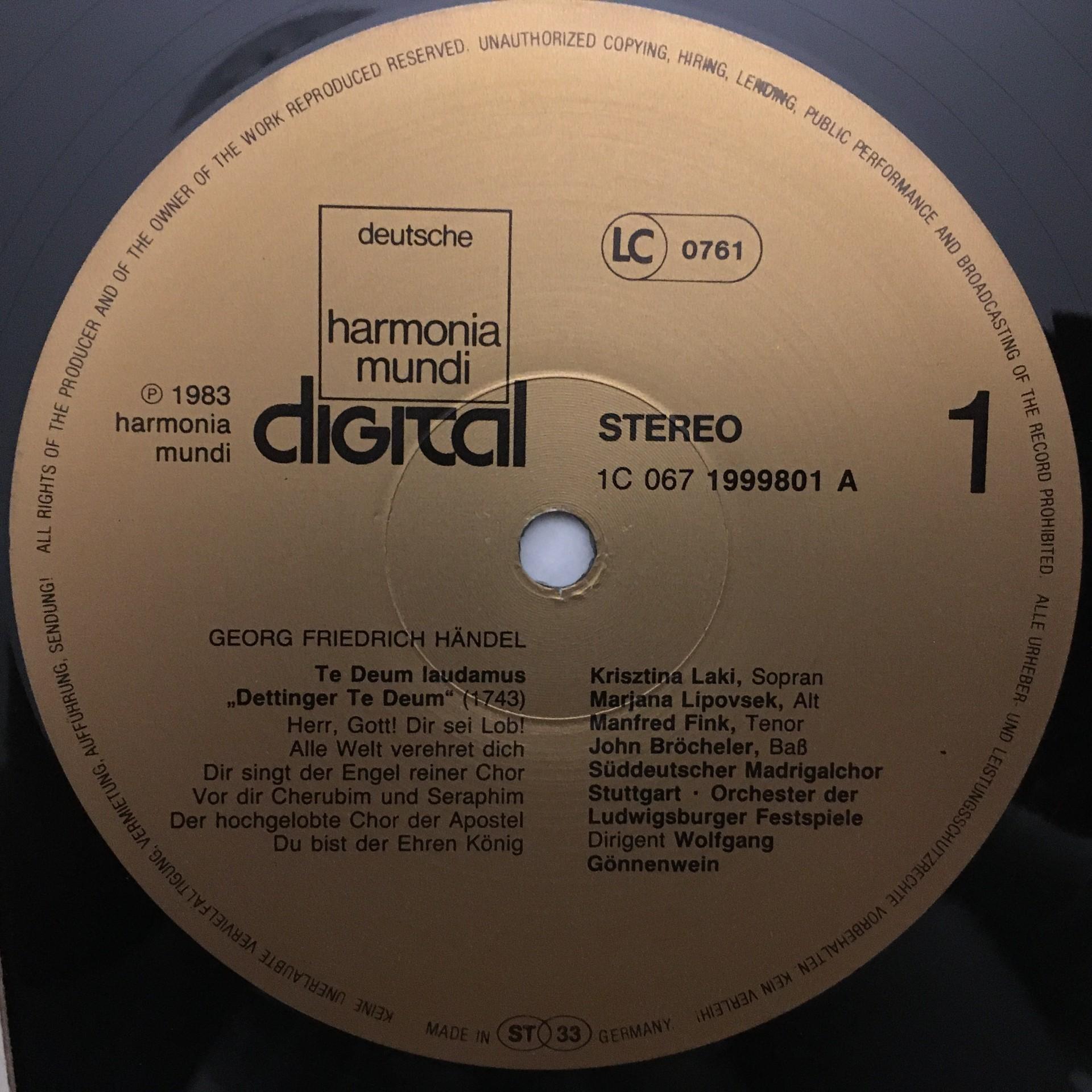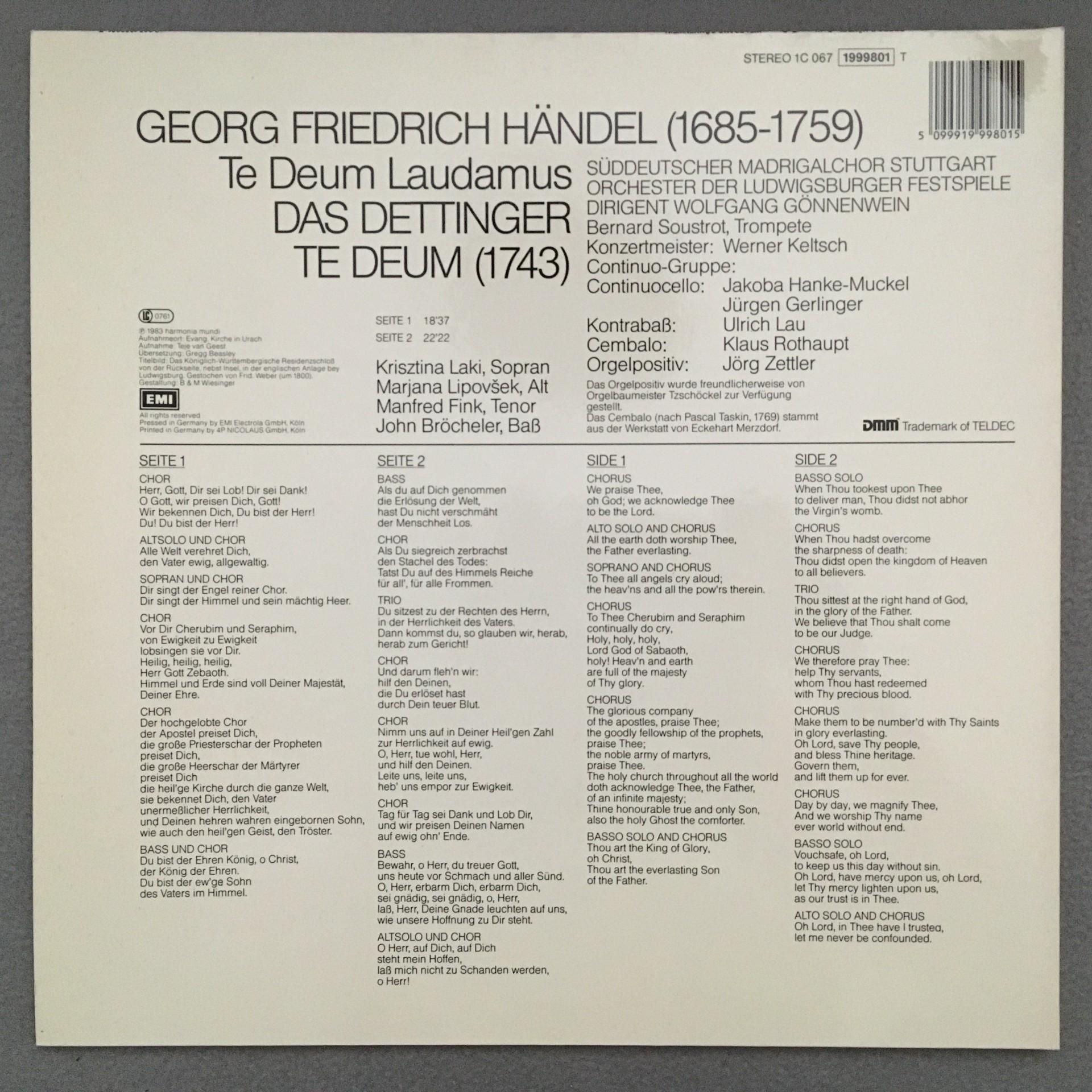 K453 Handel Dettinger Te Deum Soustrot Gönnenwein HM 1C 067 1999801 T Digital St