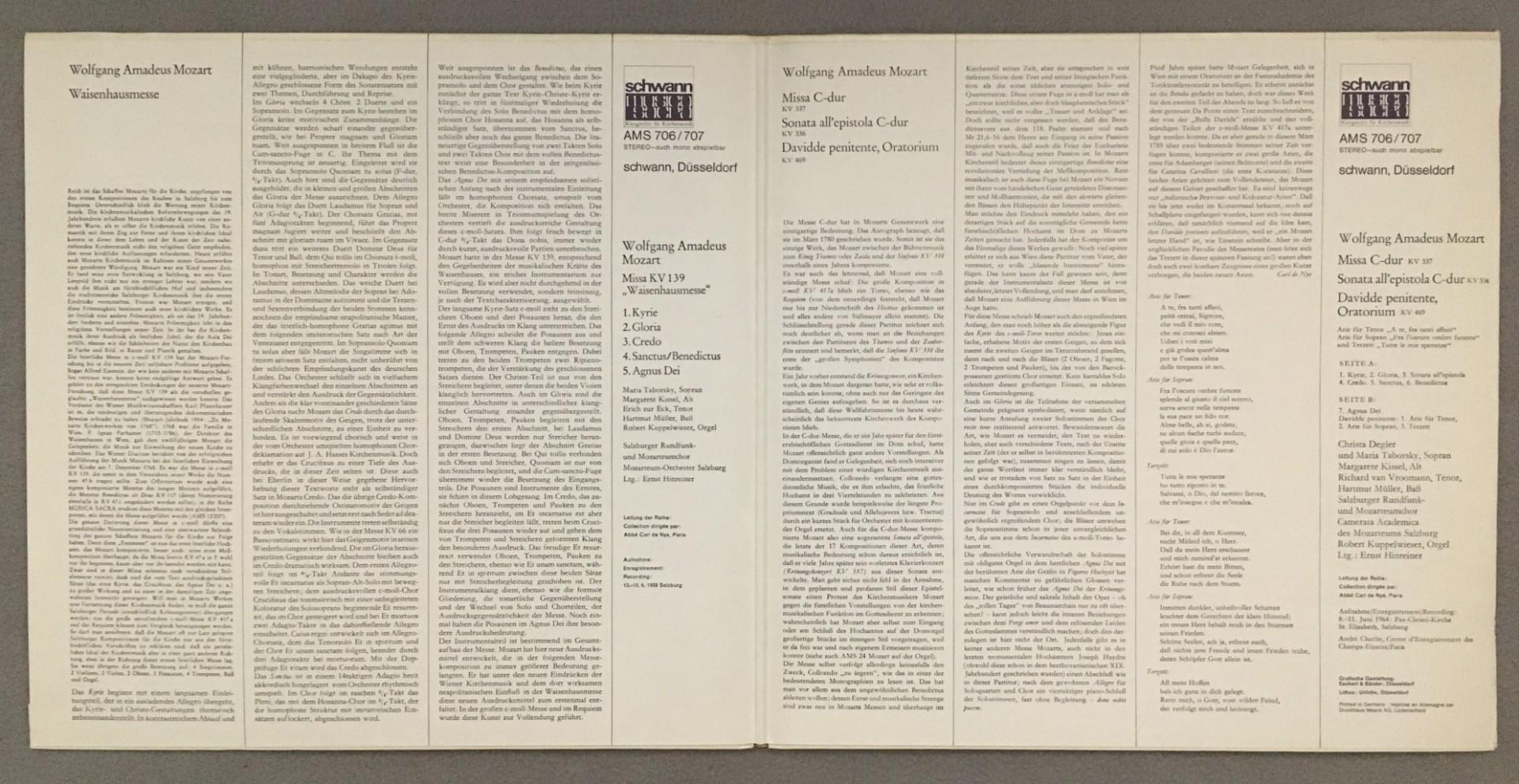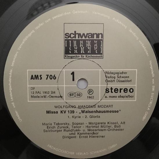 K458 Mozart Salzburg Church Music Hinreiner 2LP Schwann AMS 706/707 Stereo