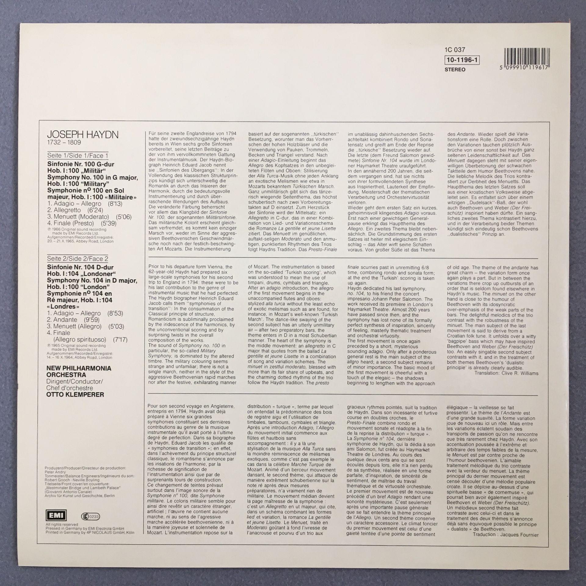 K475 Haydn Symphonies No.100 & No.104 Klemperer EMI 1C 037 10-1196-1 Stereo