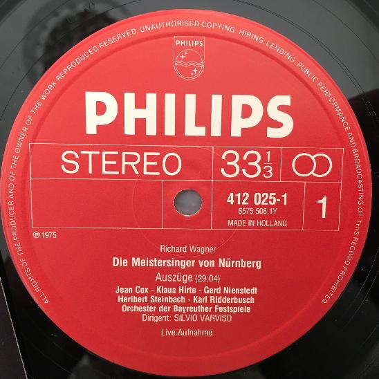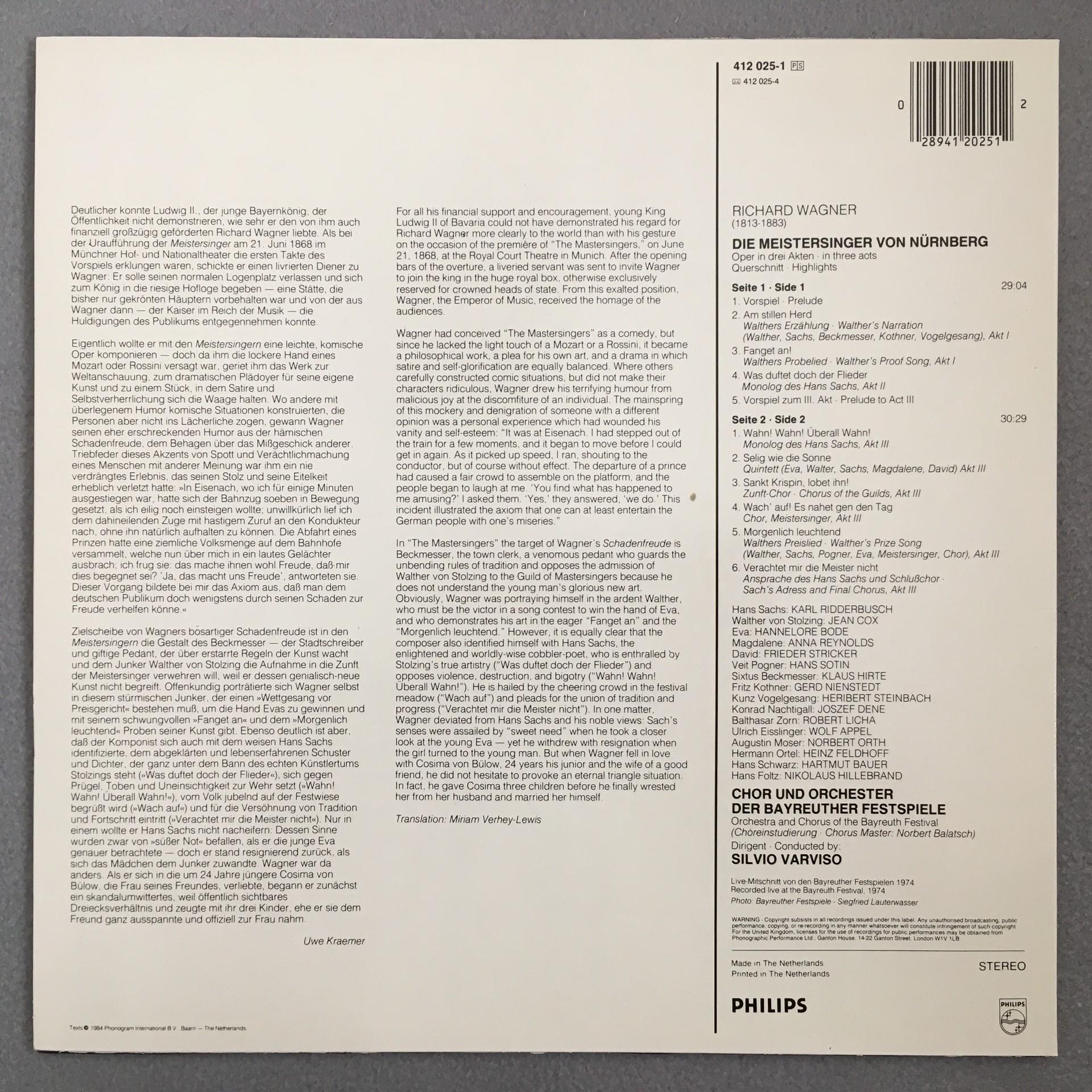 K484 Wagner Meistersinger von Nürnberg Ridderbusch Varviso Philips 412 025-1 Ste