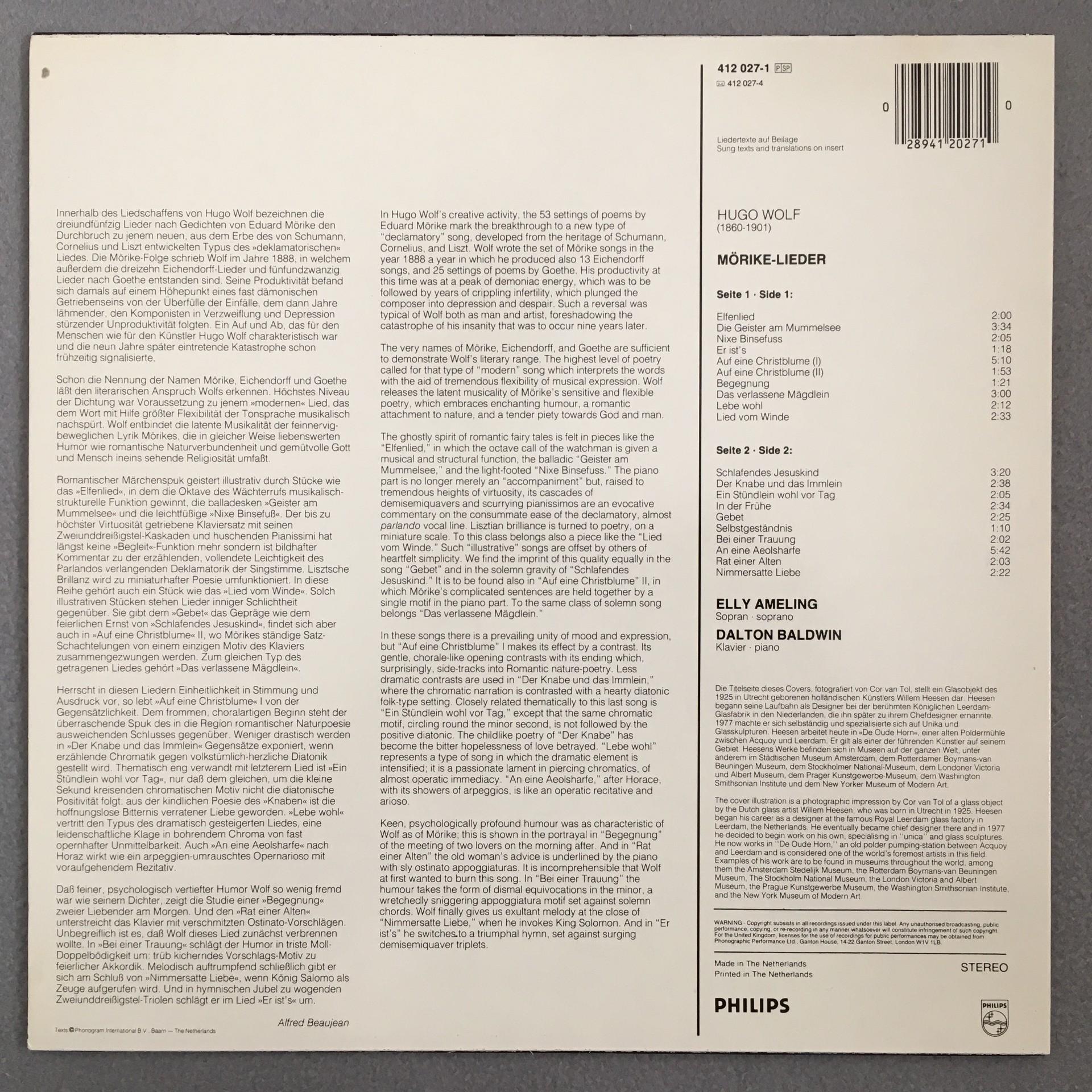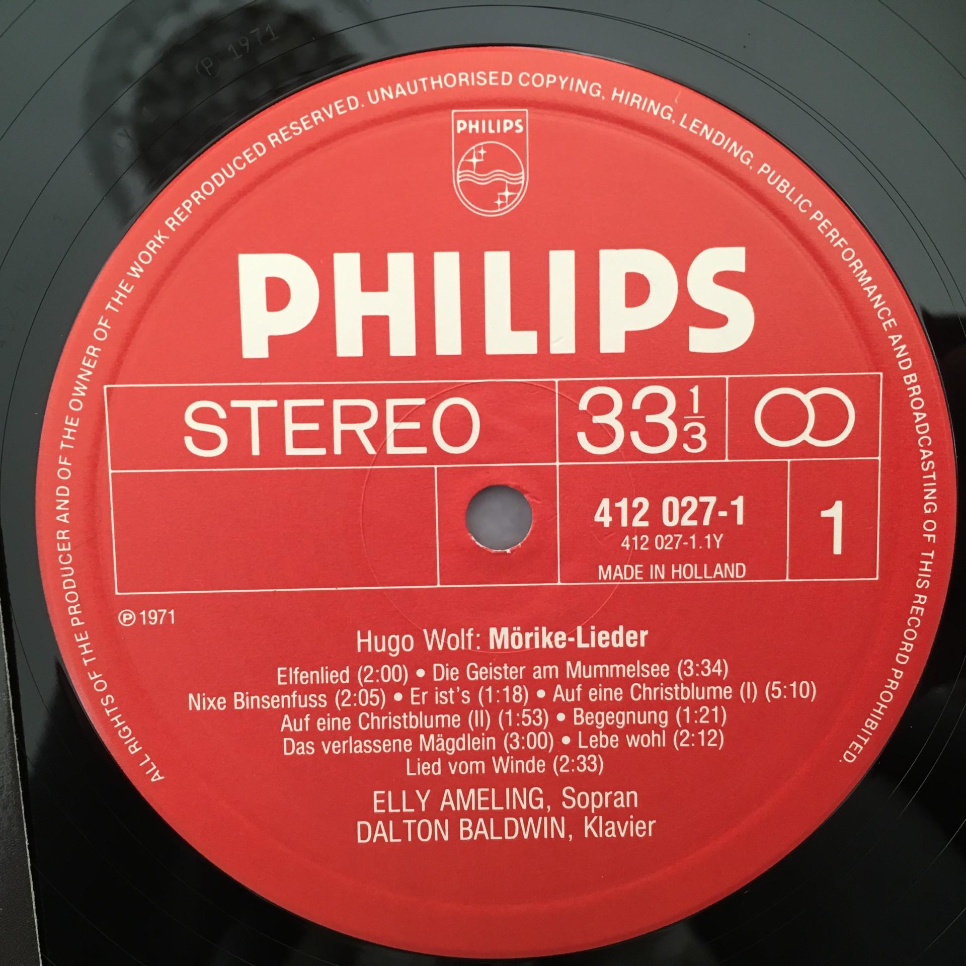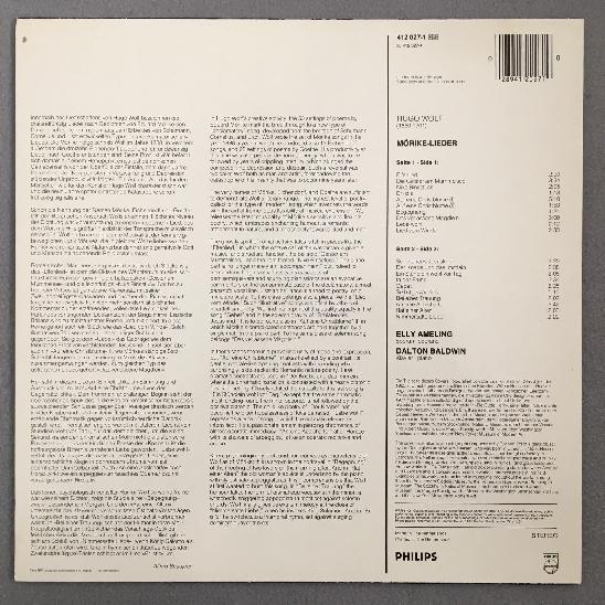 K485 Hugo Wolf Mörike Songs Ameling Baldwin Piano Philips 412 027-1 Stereo