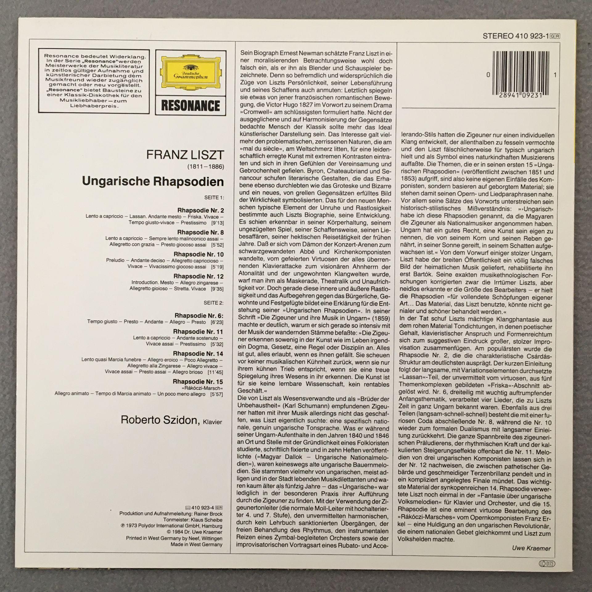 P208 Liszt Hungarian Rhapsodies Szidon Piano DGG 410 923-1 Stereo