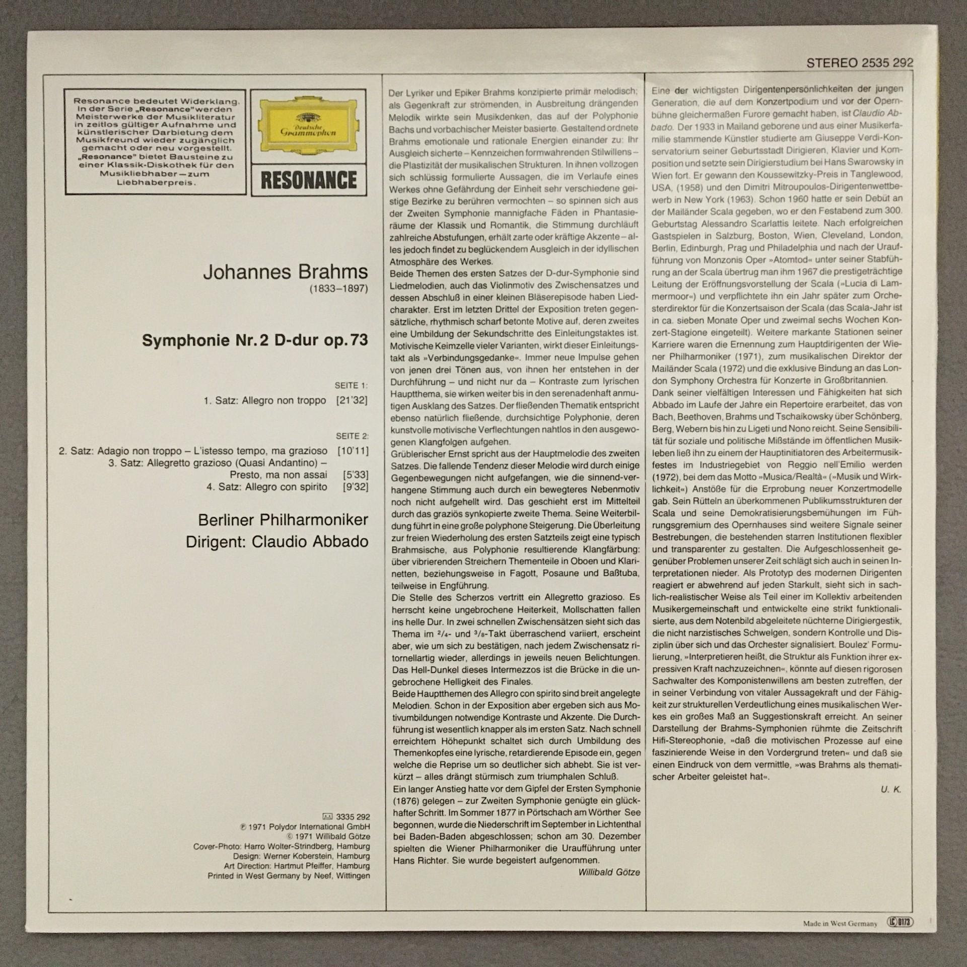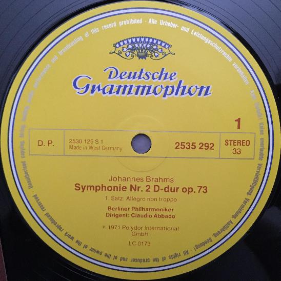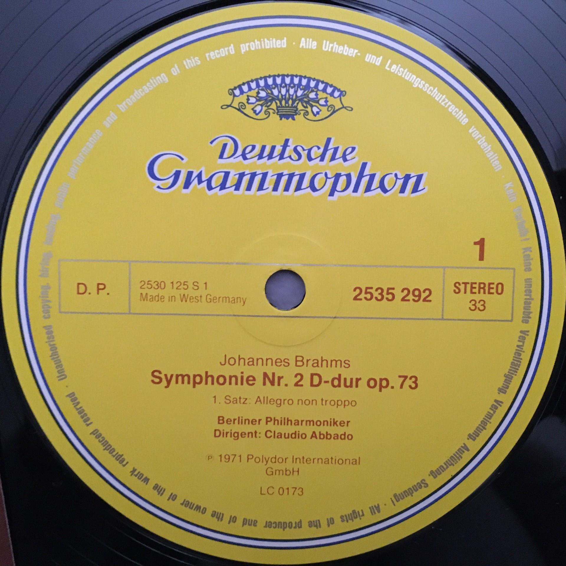 K496 Brahms Symphony No.2 Abbado BPO DGG 2535 292 Stereo