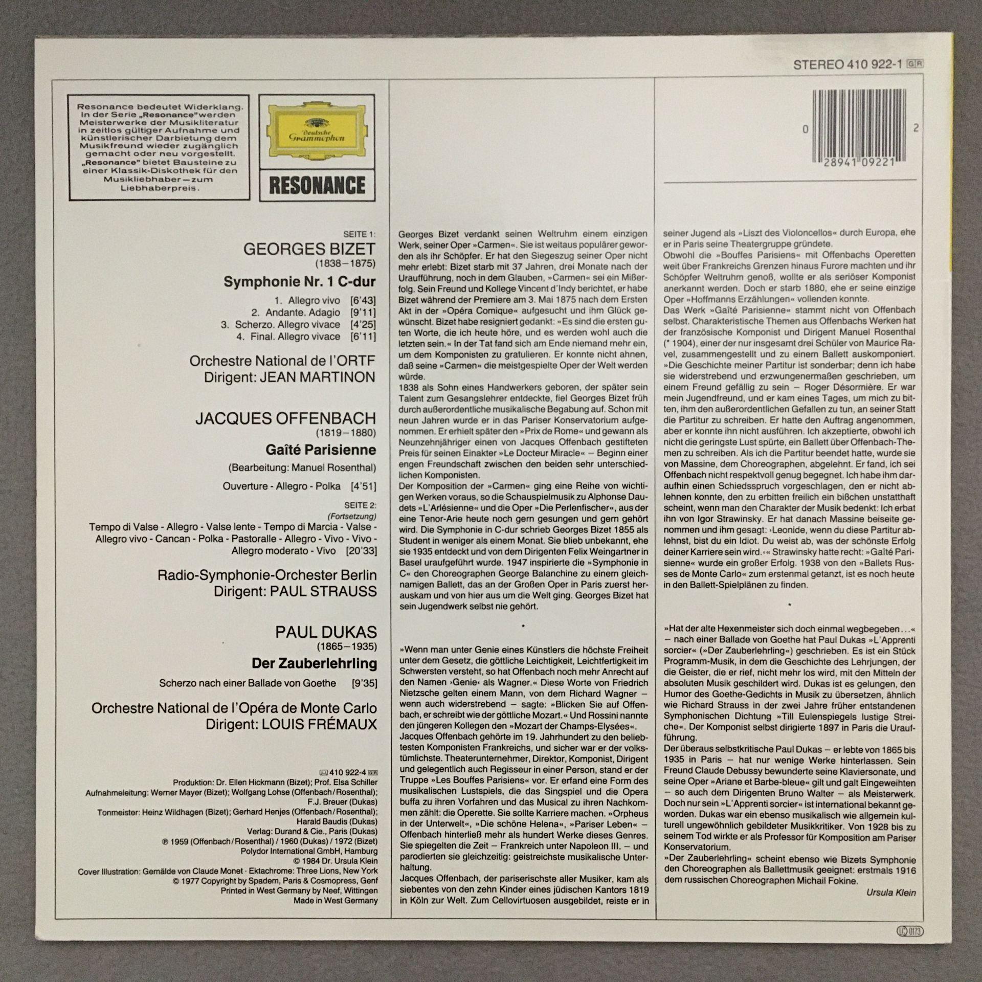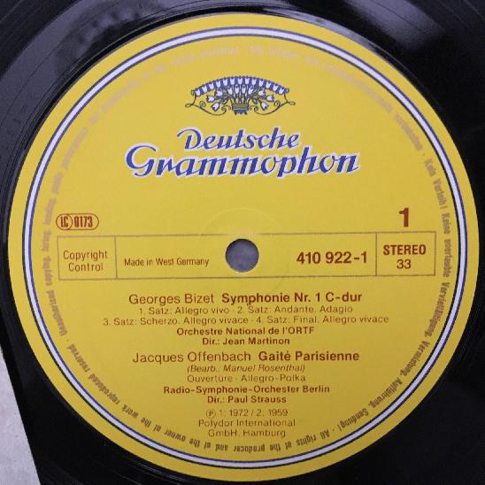 K498 Bizet Symphony No.1 Martinon Offenbach Dukas DGG 410 922-1 Stereo