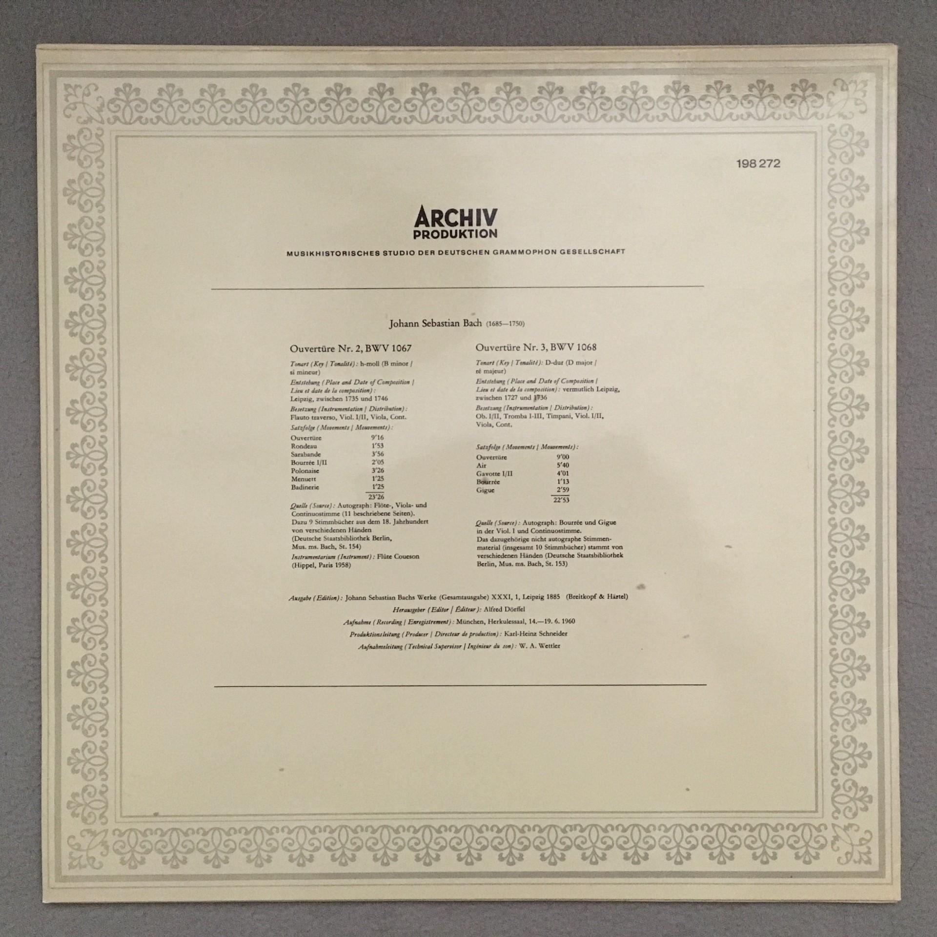 K507 Bach Overtures No.2 & No.3 Nicolet Richter DGG Archiv 198 272 Stereo