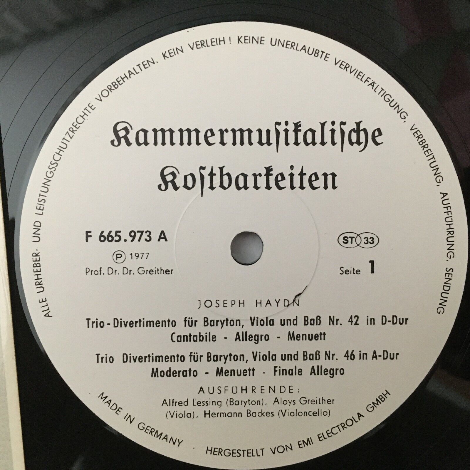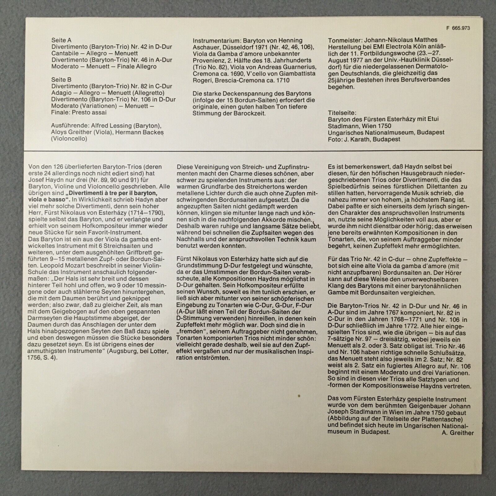 R725 Haydn Trio Divertimenti Lessing Greither Backes EMI F 665.973 Stereo
