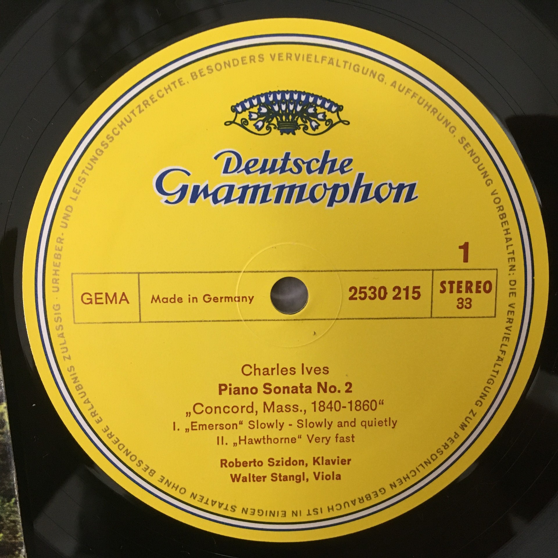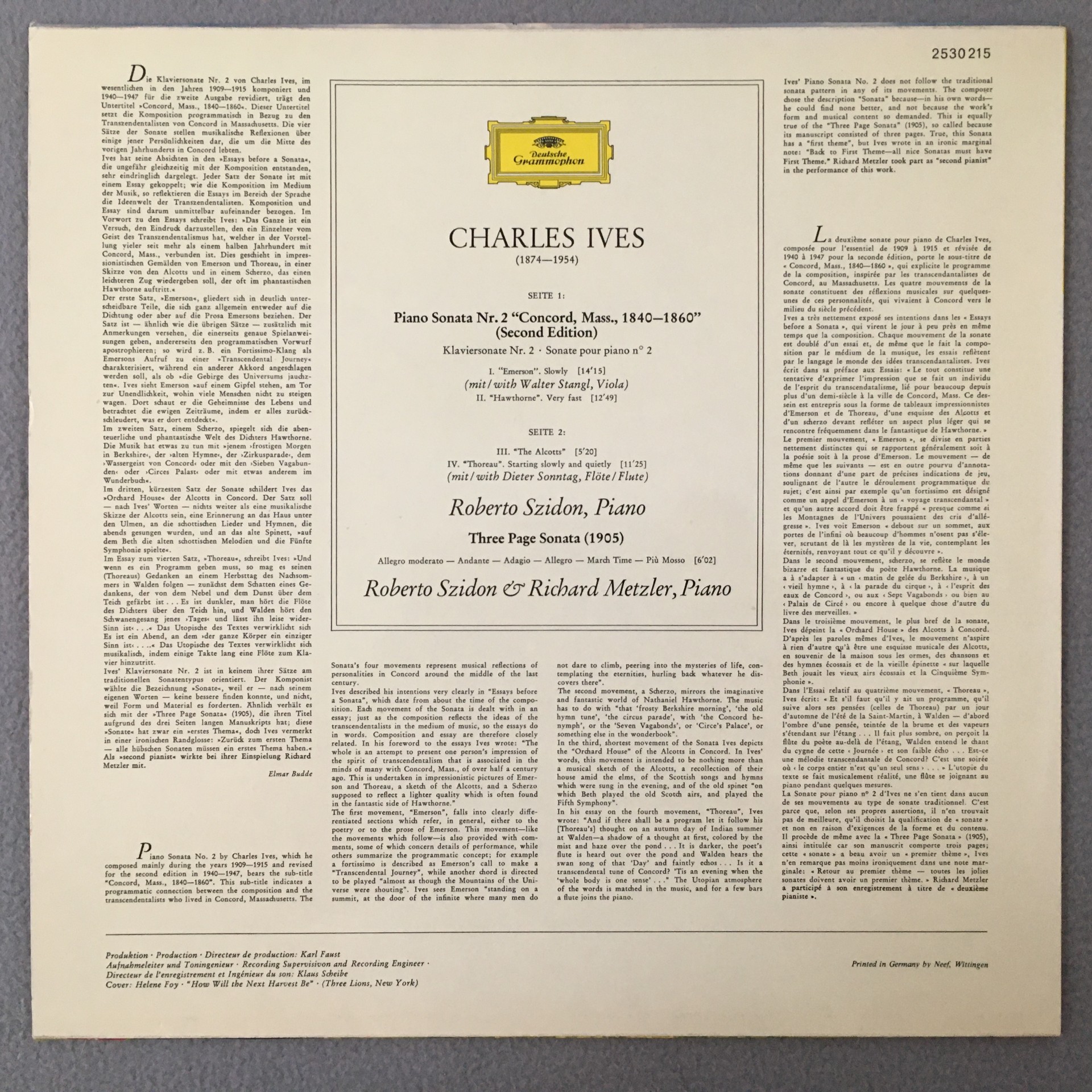 P223 Ives Piano Sonata No.2 Szidon Metzler Stangl Sonntag DGG 2530 215 Stereo