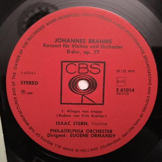 K513 Brahms Violin Concerto Stern Ormandy CBS S 61014 Stereo