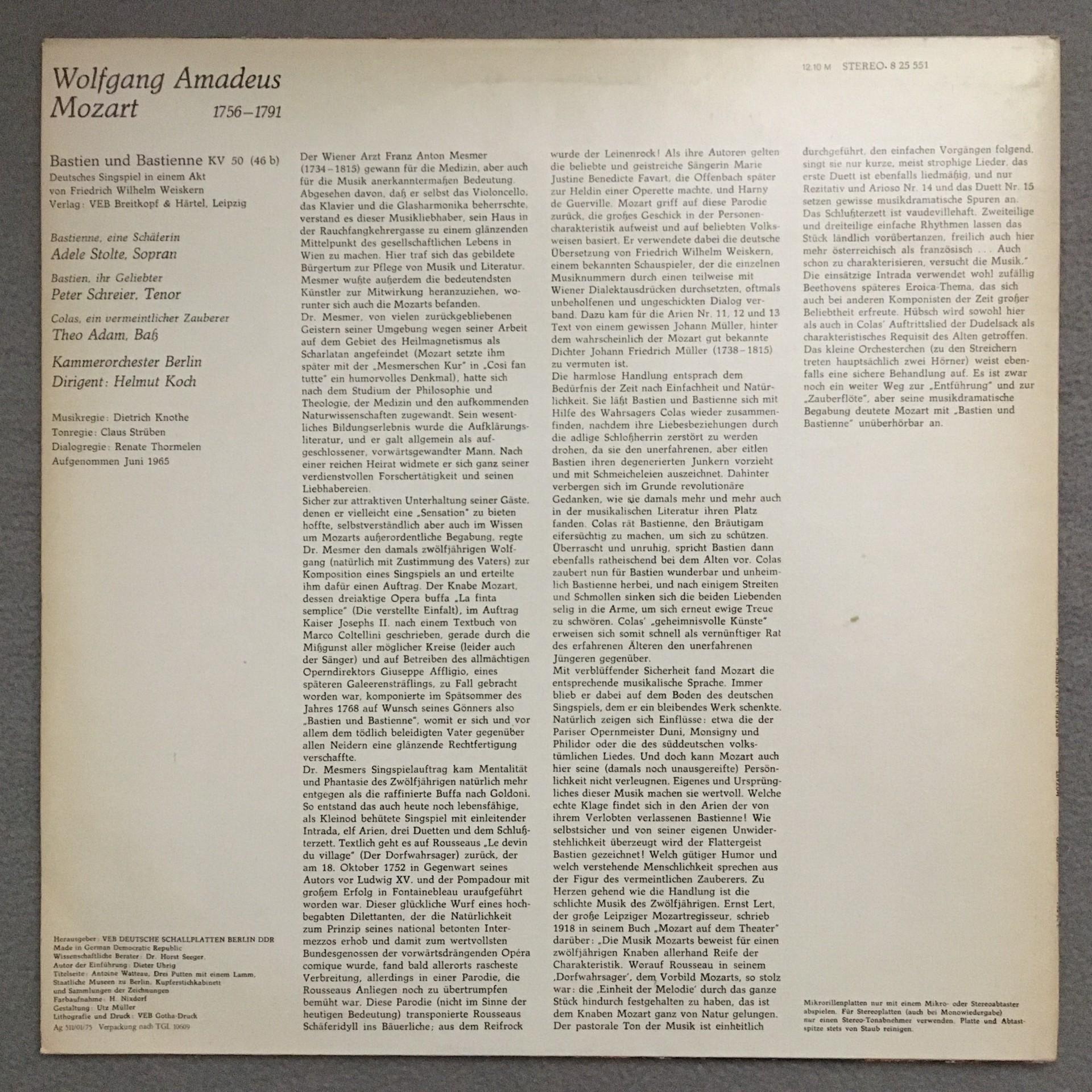 K514 Mozart Bastien & Bastienne Stolte Schreier Adam Koch Eterna 8 25 551 Stereo