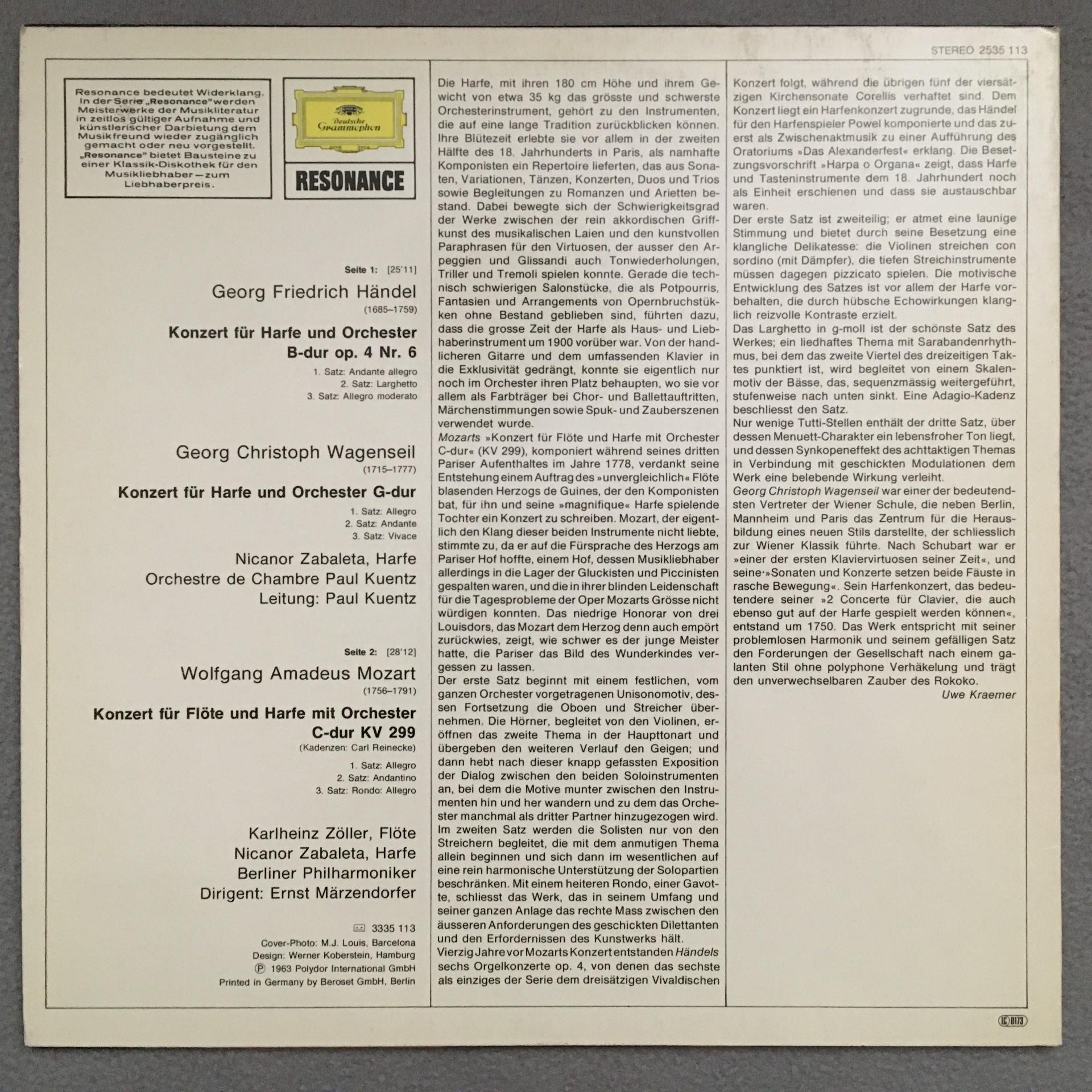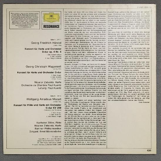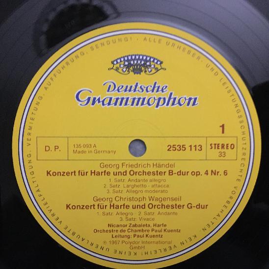 K530 Harp Concertos Zabaleta Handel Mozart Wagenseil DGG 2535 113 Stereo