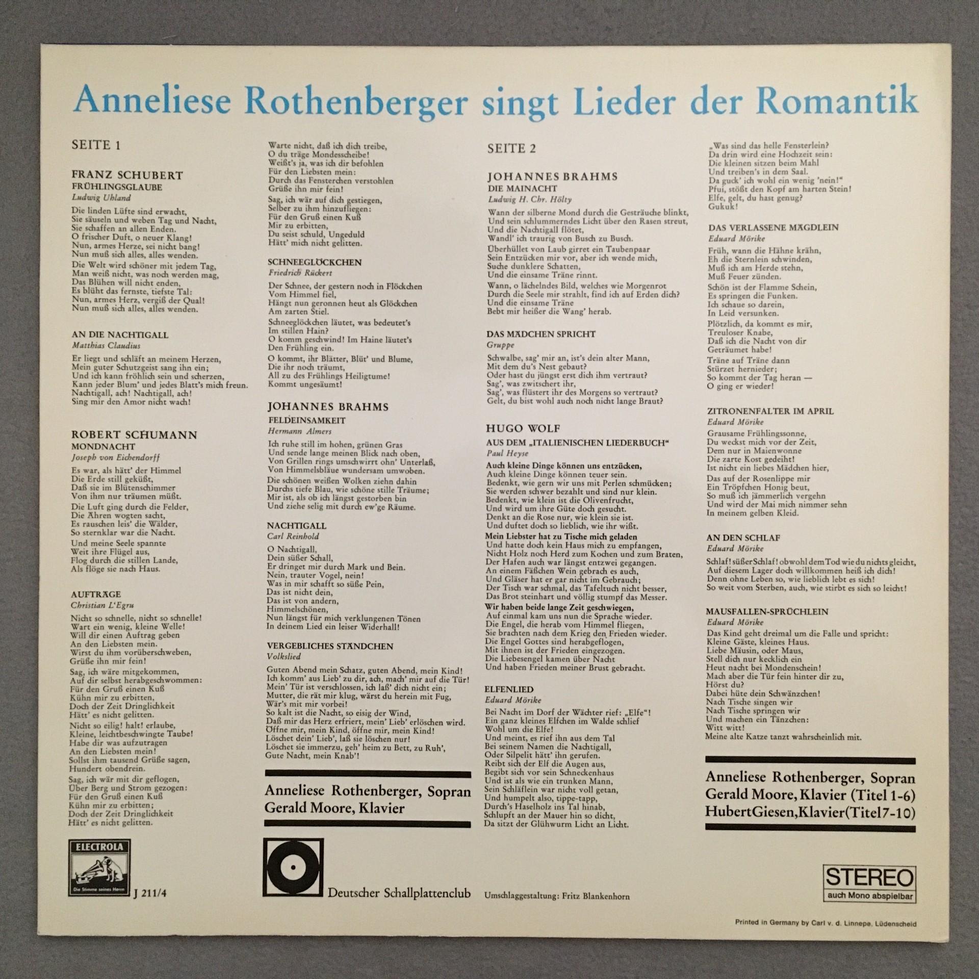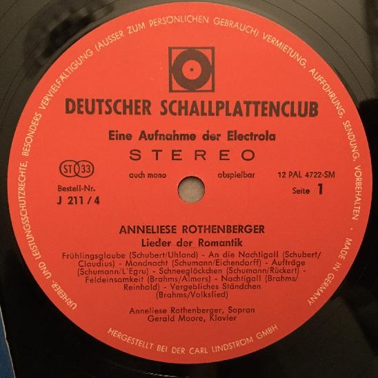 K535 Rothenberger Songs Moore Piano Deutscher Schallplattenclub J 211/4 Stereo