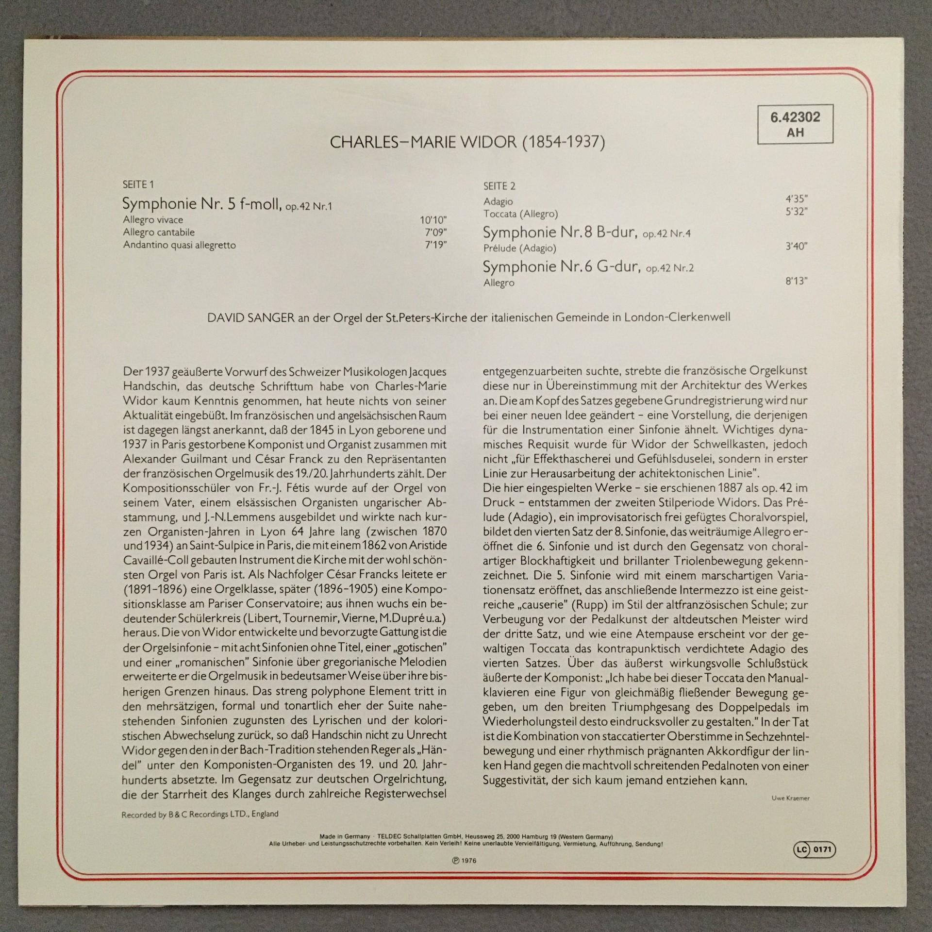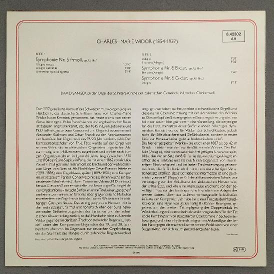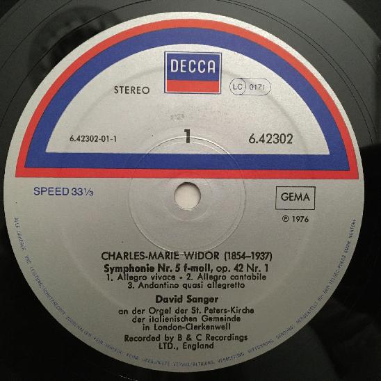 K536 Widor Symphonies No.5 & 8 & 6 Sanger Organ DECCA 6.42302 AH Stereo