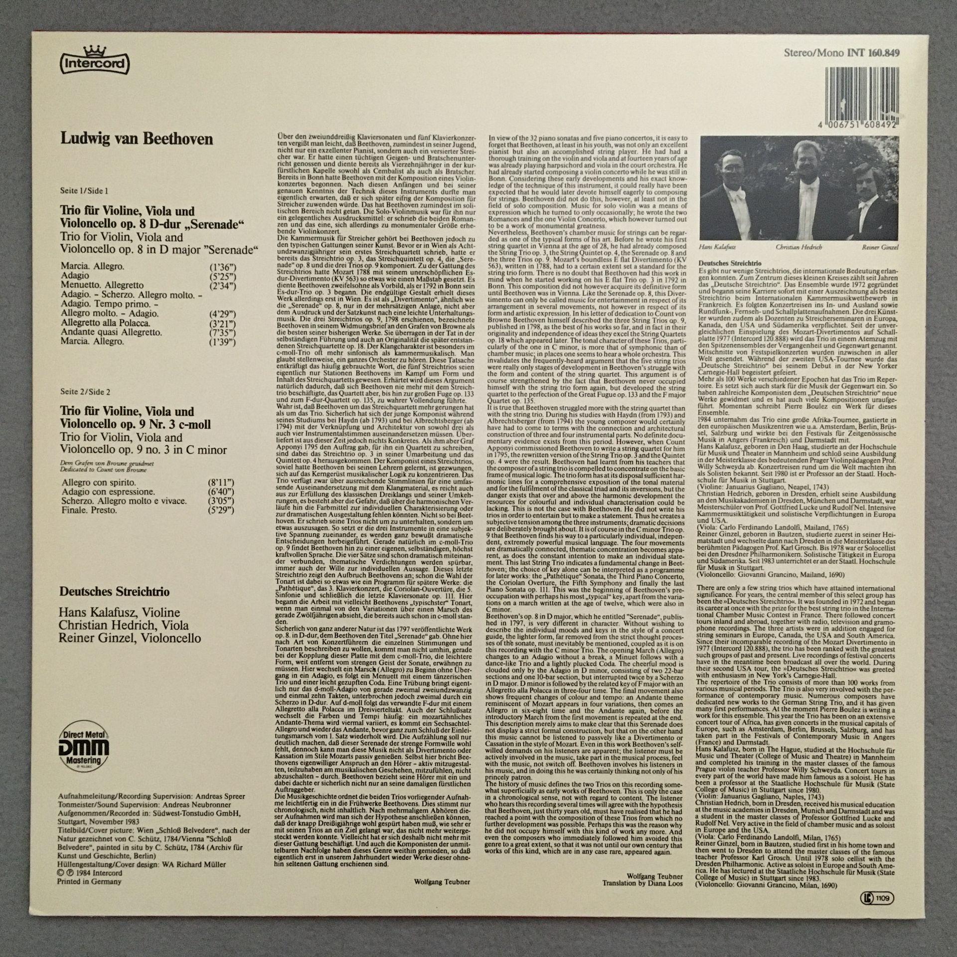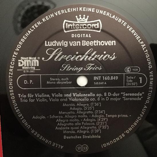 K541 Beethoven String Trios German String Trio Intercord INT 160.849 Digital St