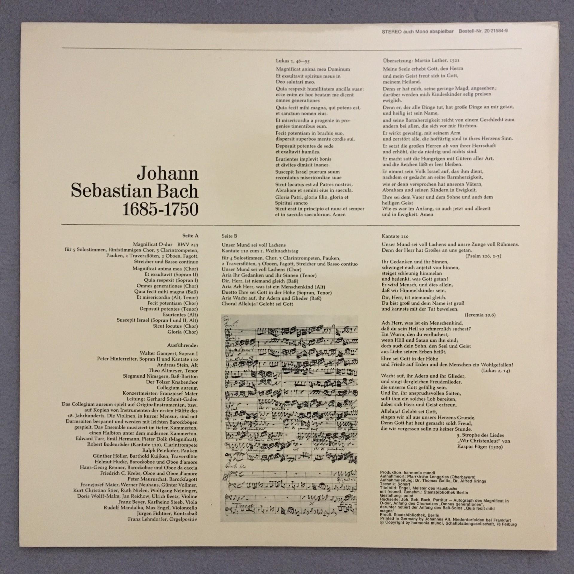 K549 Bach Magnificat Cantata Altmeyer Schmidt-Gaden HM 20 21584-9 Stereo