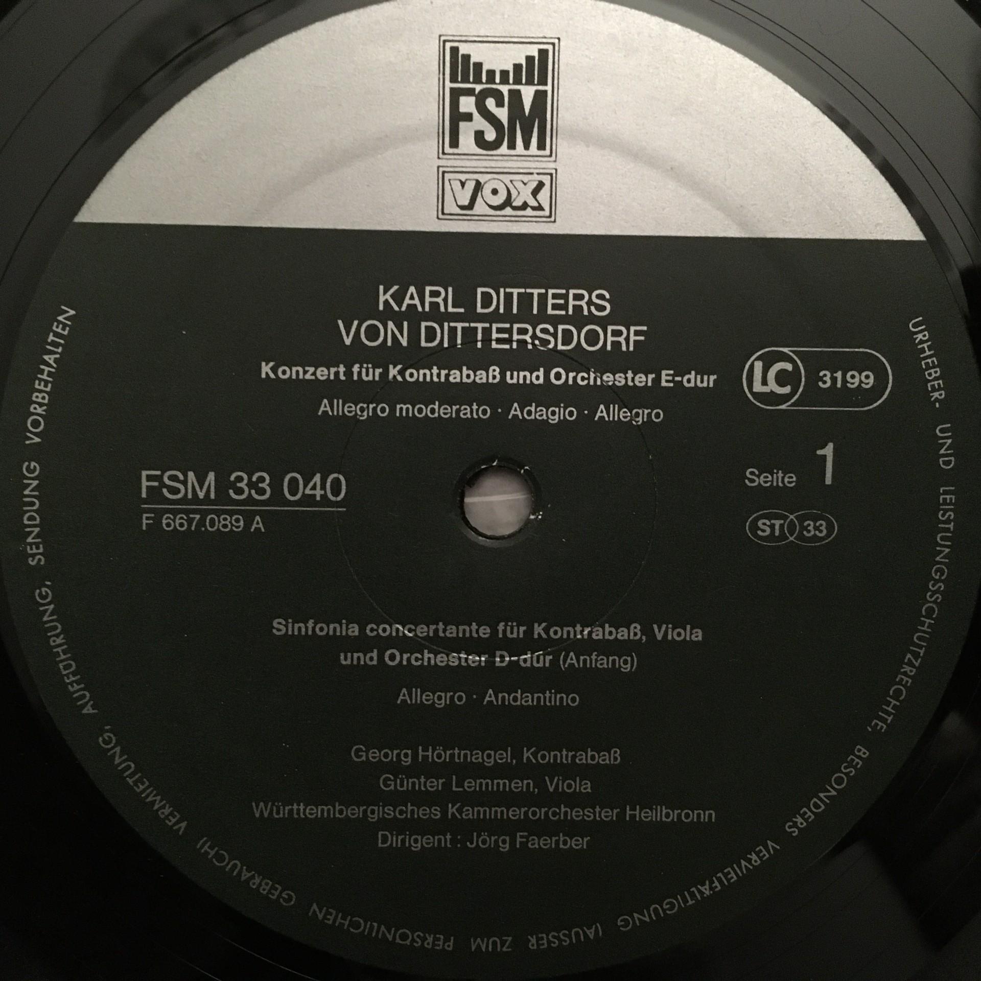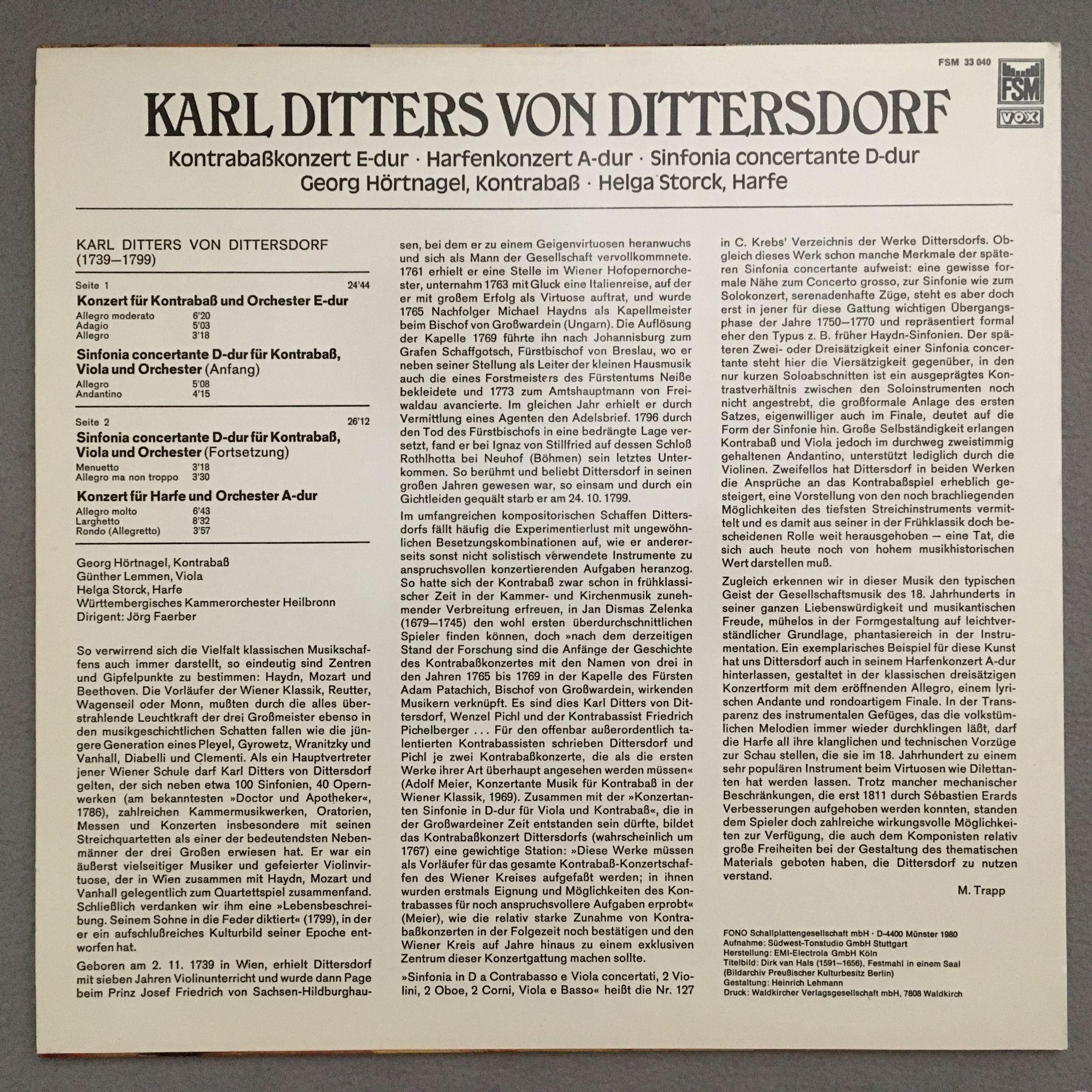 K551 Ditters Concertos Hortnagel Contrabass Storck Harp Faerber FSM 33 040 Stere
