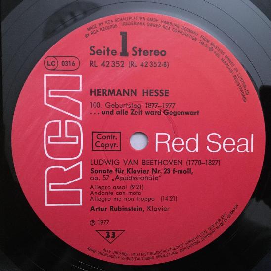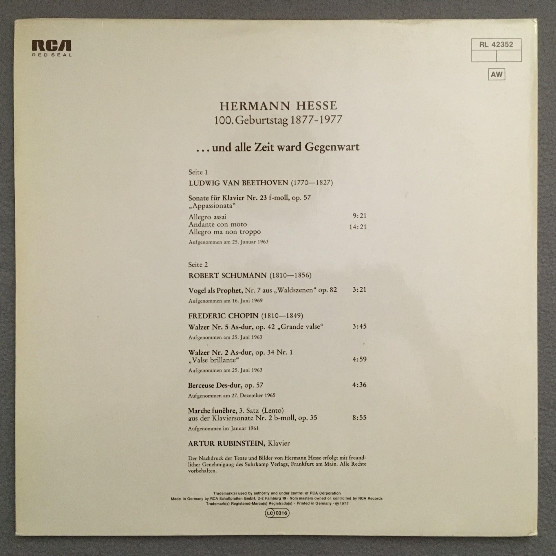 K574 Hesse Birthday Beethoven Schumann Rubinstein Piano RCA RL 42352 Stereo