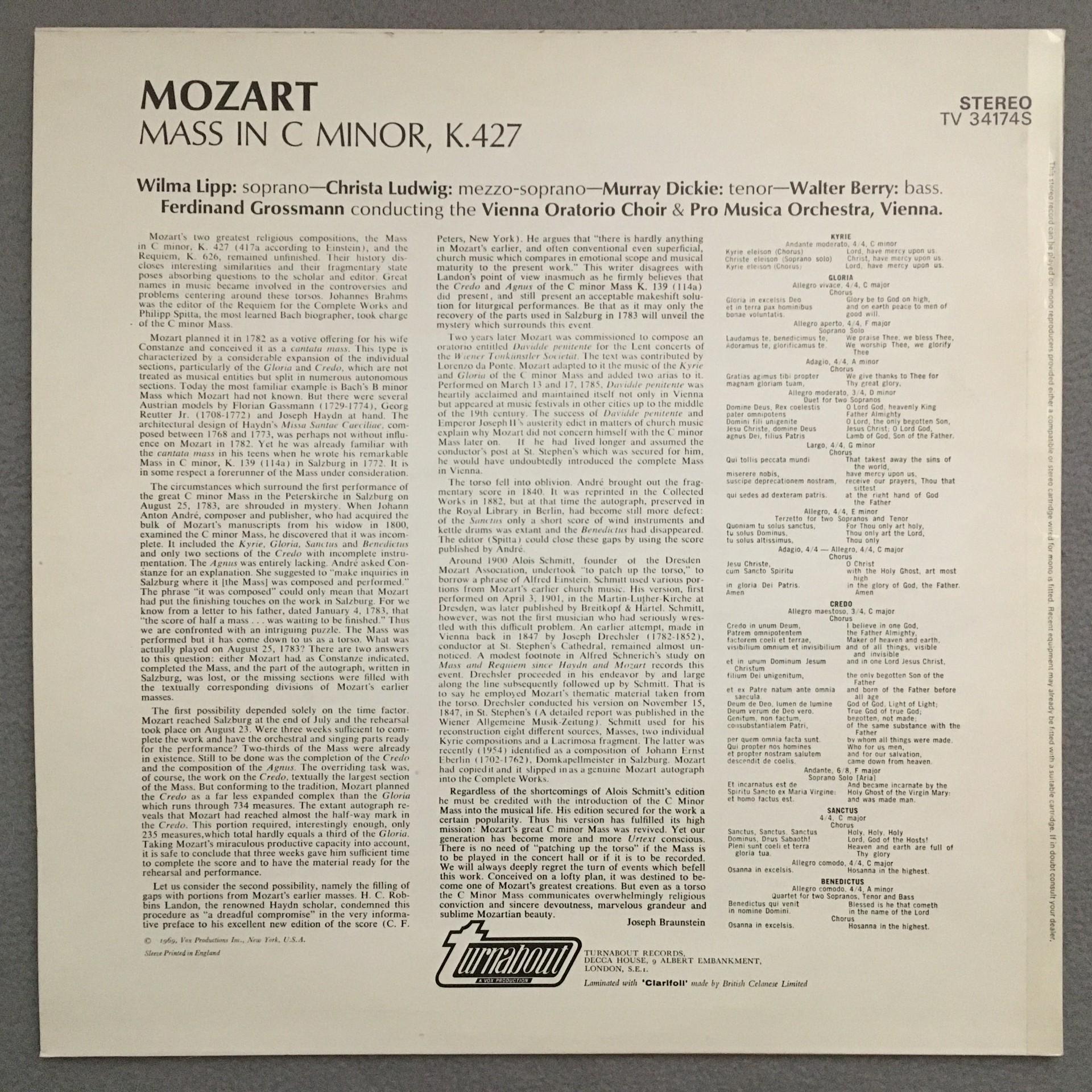 K576 Mozart Mass Ludwig Berry Lipp Grossmann Turnabout TV 34174S Stereo
